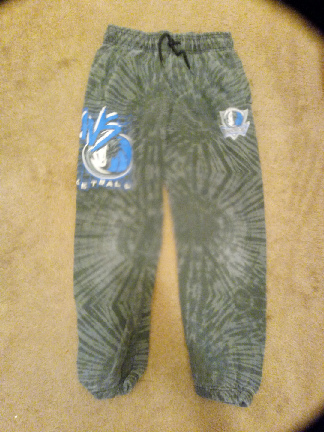 Youth size large Dallas Mavericks sweatpants. Tie-dye pattern. Drawstring waistband. Made in China.