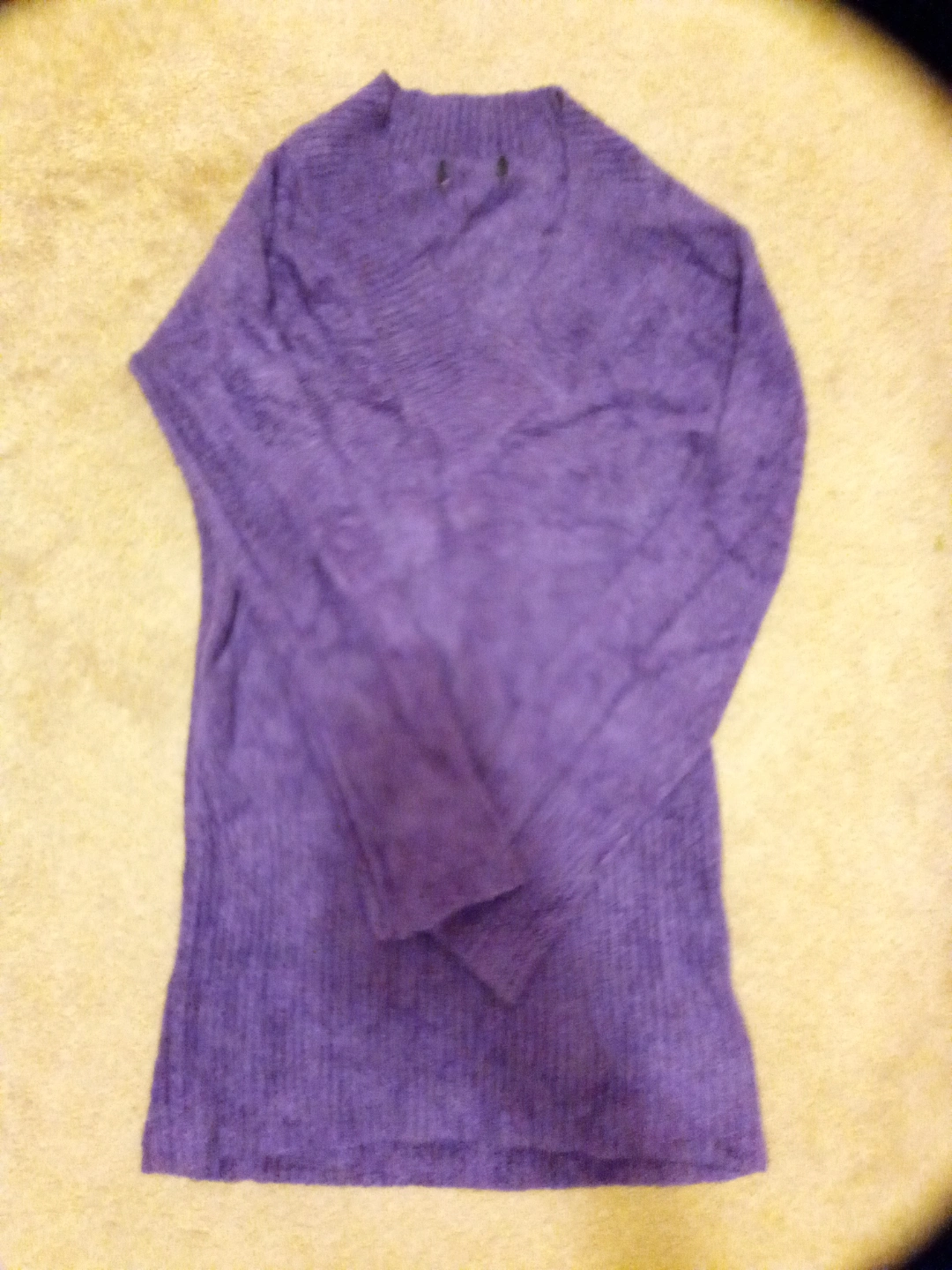 Buy & SellPurple Knit SweaterPurple Knit Sweater$4Women's long-sleeved purple sweater. Soft knit material. V-neck. Relaxed fit.SizeSWHERE TO MEETCheck LocationView MapSELLERjeri oPanorama Hills603 reviews0 chats·0 favorites·10 views