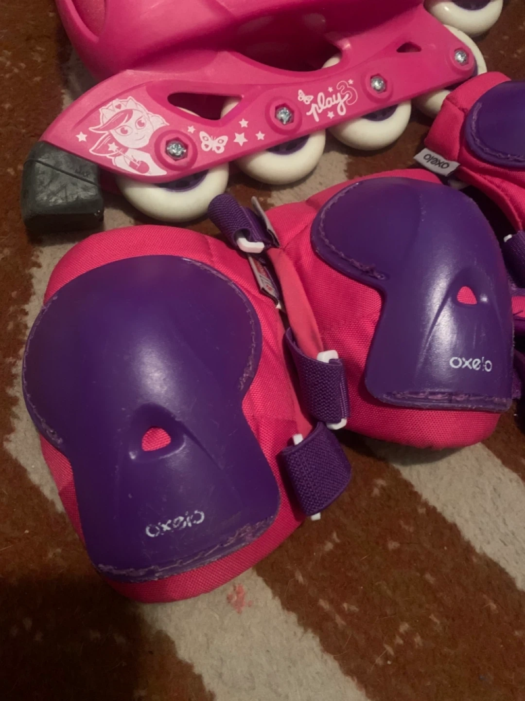 Oxelo Pink & Purple Roller Skates with Protective Gear