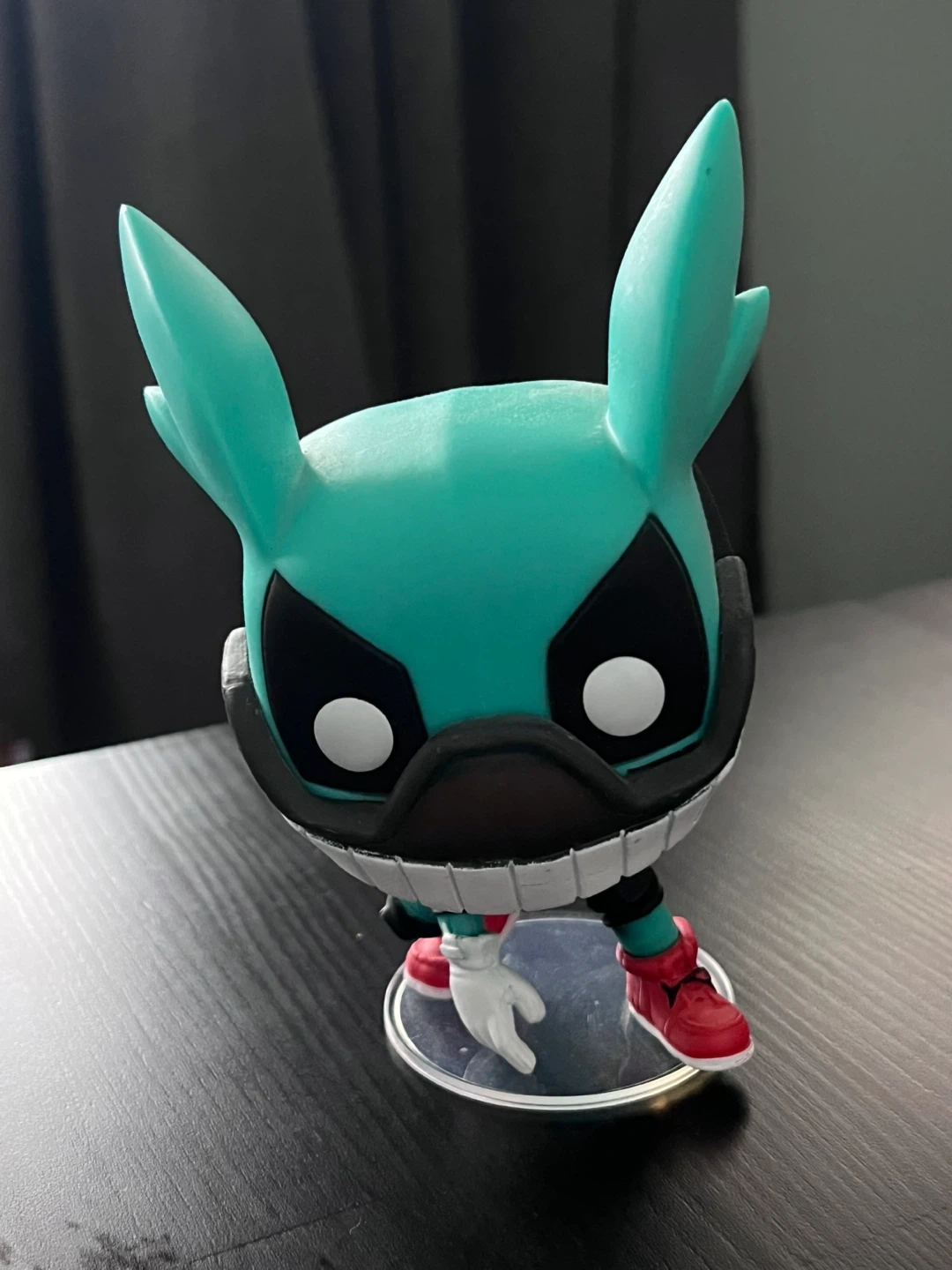 This is a Funko Pop! vinyl figure of Izuku Midoriya from My Hero Academia. It stands on a clear display base. No box included. This figure is great for any anime fan’s collection.