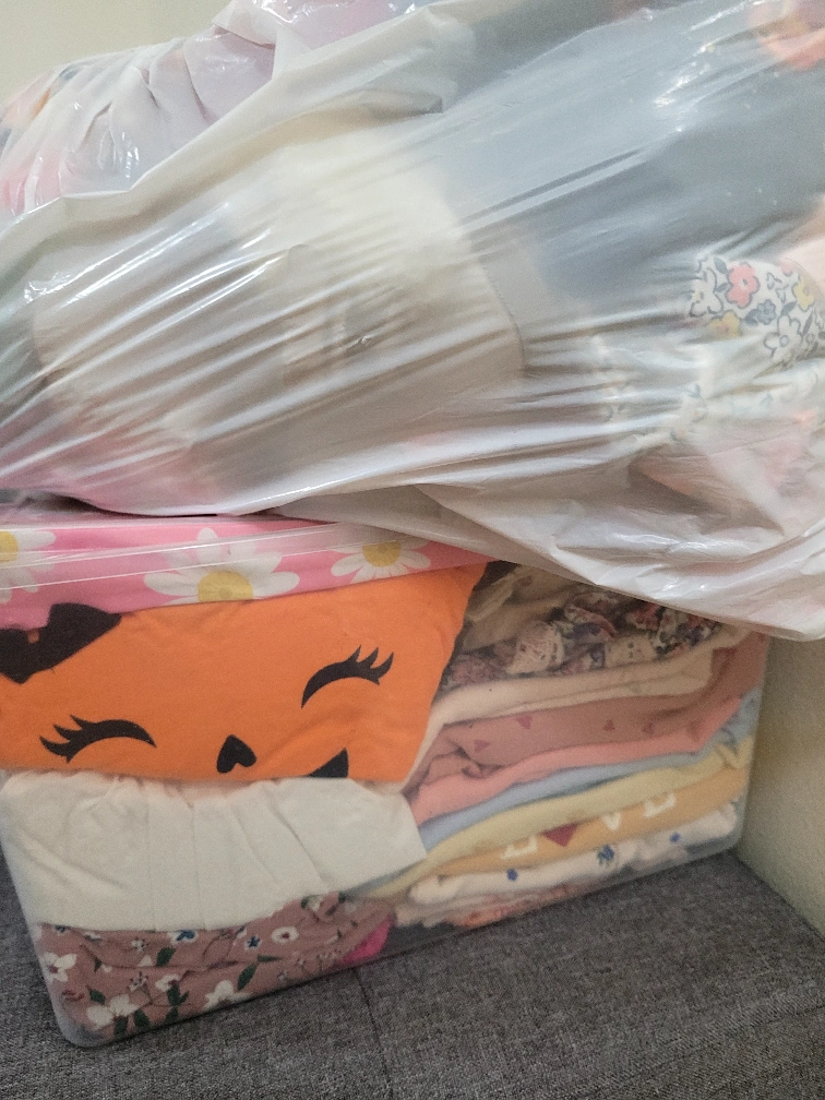 Bundle of baby clothes in 3 to 9 months. Includes long and short sleeve onies, pants, and a few dresses. All the clothes are in good condition. Dresses and shoes are fairly new.