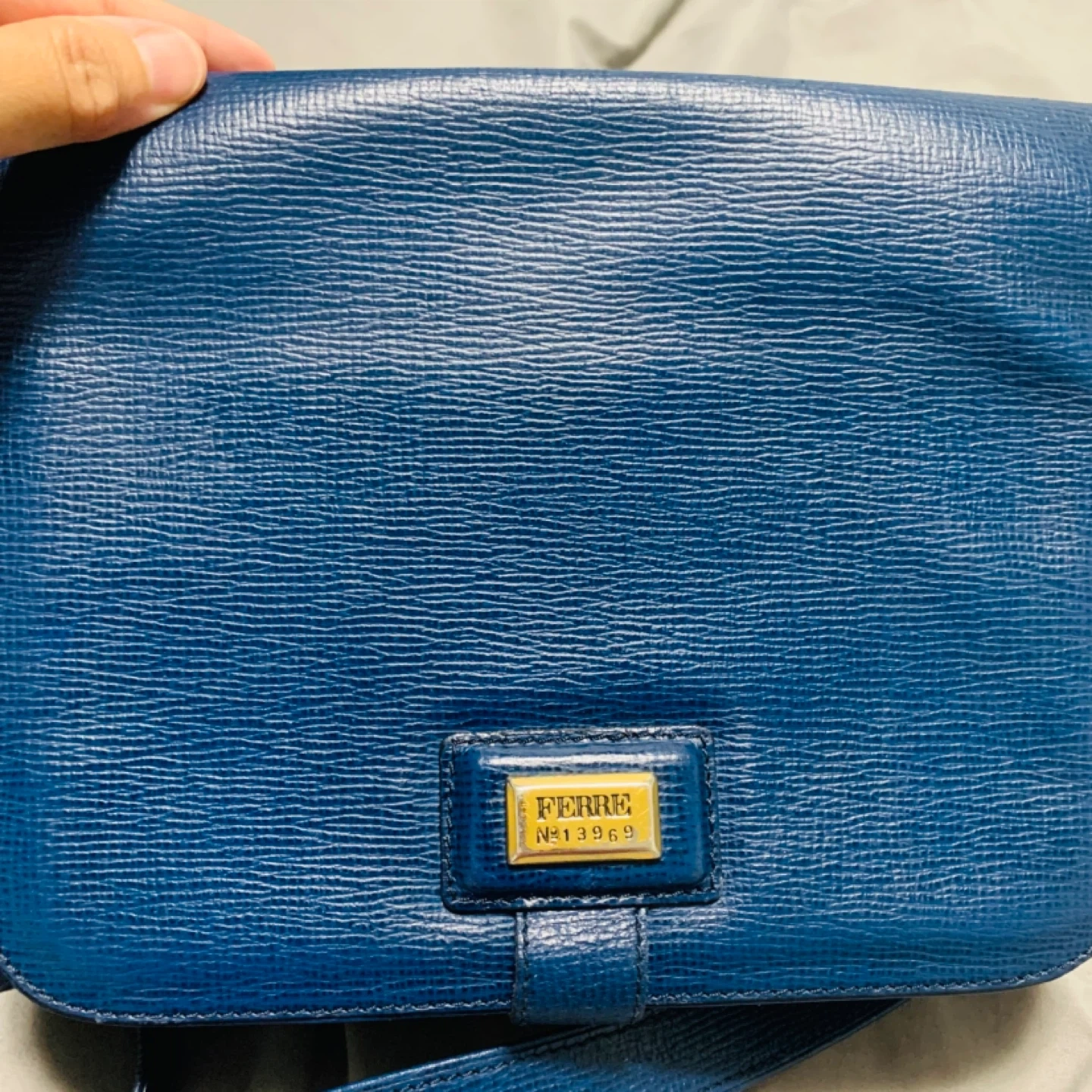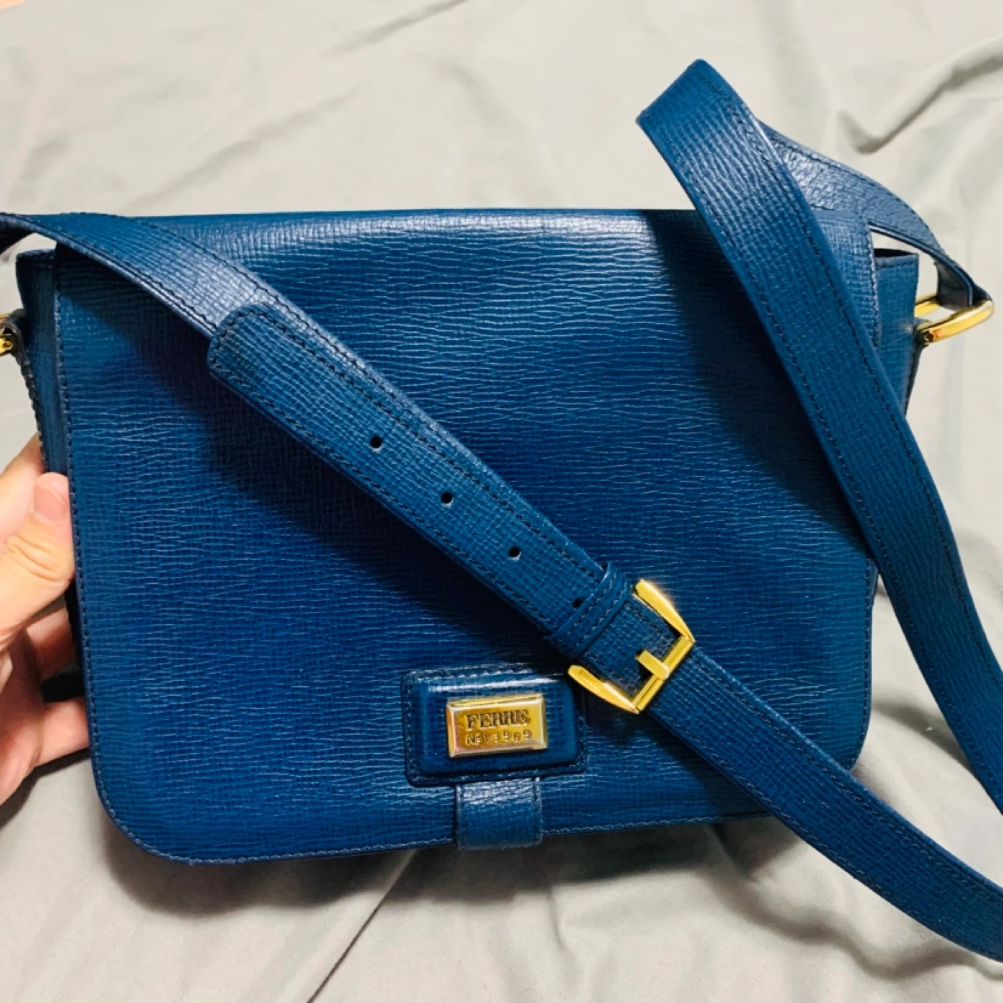 Selling a Ferre N.13969 crossbody bag in a beautiful blue leather! It's in great condition and perfect for everyday use