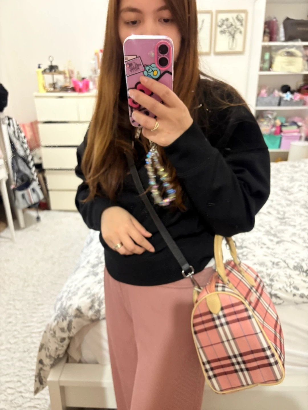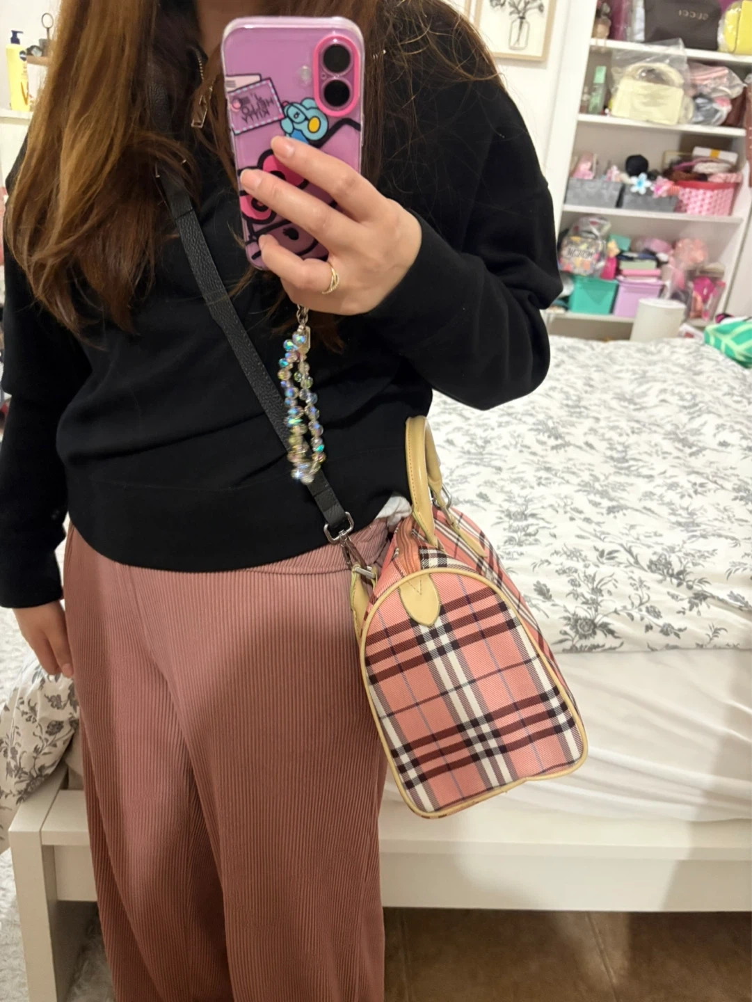 Burberry Pink Plaid Satchel Bag