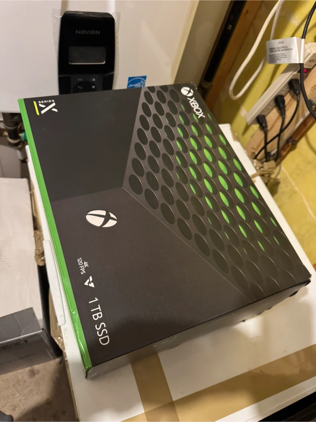 Selling an Xbox Series X 1TB console in black. Includes original packaging, one controller, and three games: Destiny 2, Call of Duty Black Ops Cold War, and FIFA 21. It's ready for some serious gaming!