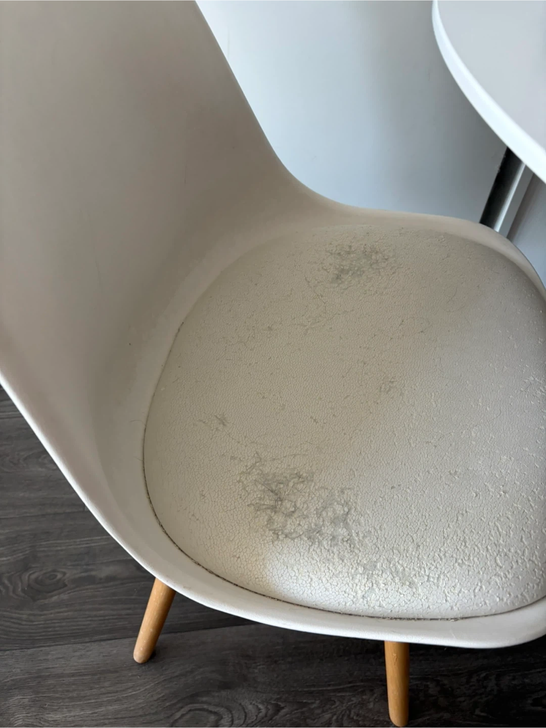 This is a white round dining table and two matching chairs from Structcube. The chairs have padded seats. They're great for small spaces! Table a few months old but rarely used, chairs are older from previous apartment.