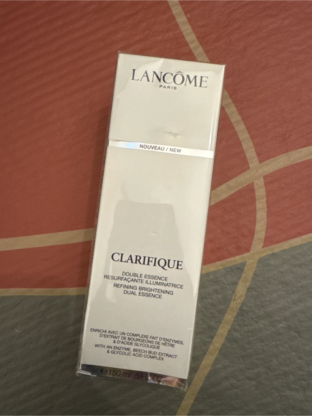 Lancôme Clarifique Refining Brightening Dual Essence. This dual-phase formula is made of two essences, blended together to provide visibly refined skin. Includes beech bud extract and glycolic acid complex. 150 ml bottle.