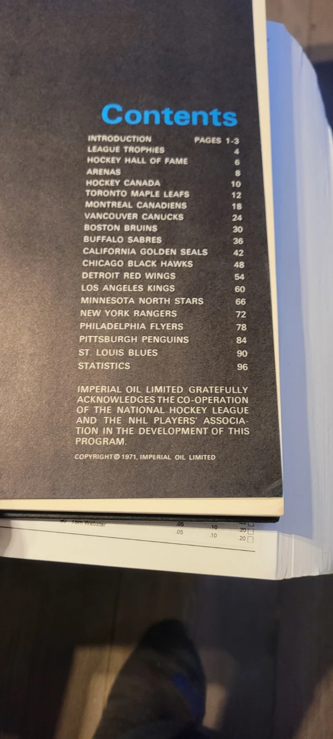 1971 Imperial Oil NHL Power Player Album