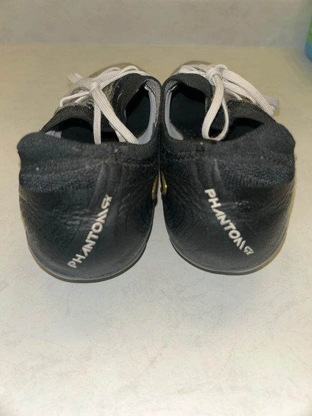 Selling my Nike Phantom GX II pro soccer cleats. They've been used and show some slight discoloration from playing in the rain, as you can see in the pictures. However, they are still in good condition with no tears or damage, and the soles are in great shape. I'm selling them because I've outgrown them. Asking $80, which seems fair given the brand and condition. I'm also open to trading for Jordan sneakers. If you see this ad, they're still available!