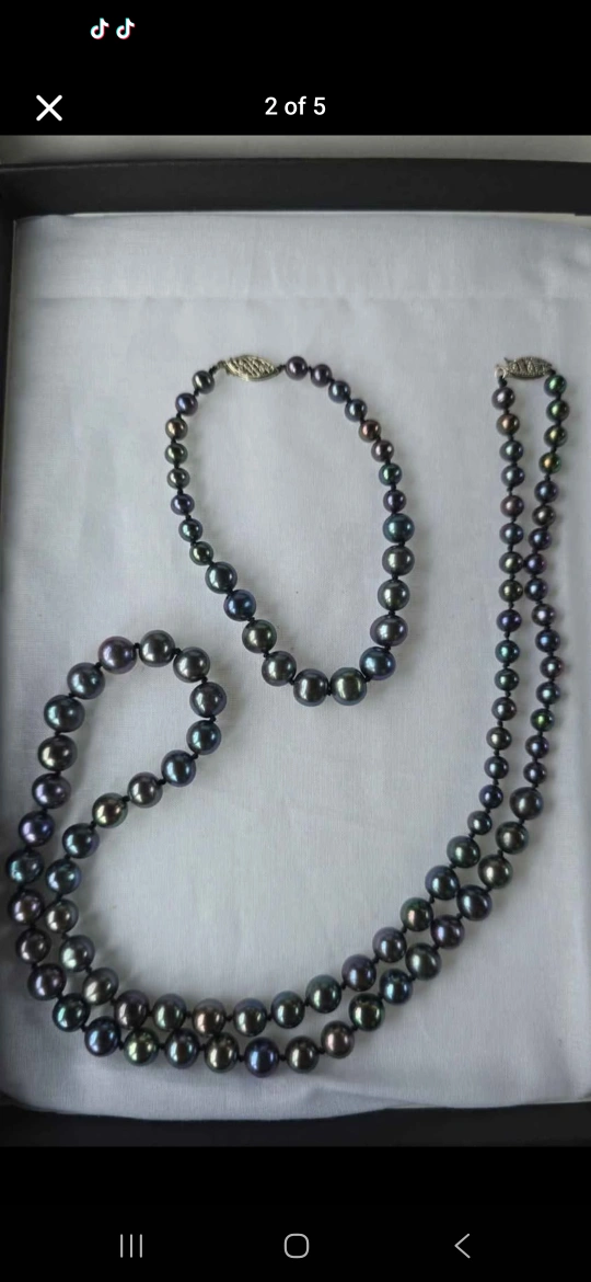 Pearl necklace and matching bracelet set. Both pieces are secured with clasp. A great accessory to have to make you feel a bit more elegant and relaxed.