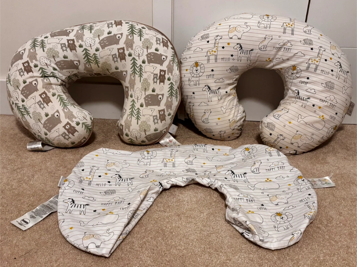 I used these with two babies and they worked wonderfully. I had two pillows so I could keep one in my bedroom and one on the main floor. I took great care of them and washed them regularly. I’m not having anymore babies so they are ready for a new home. They’ve all been washed.