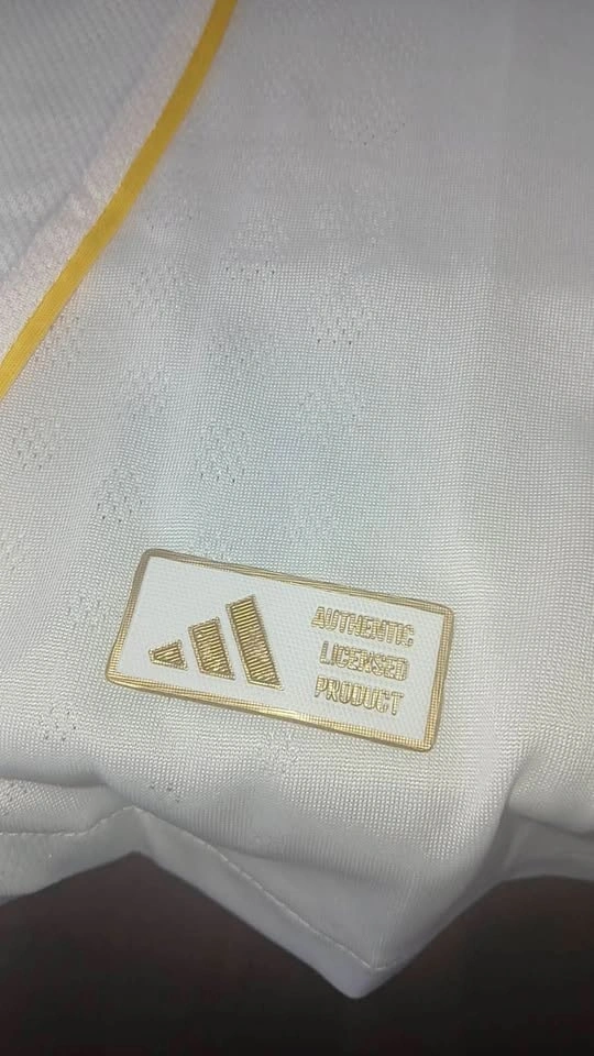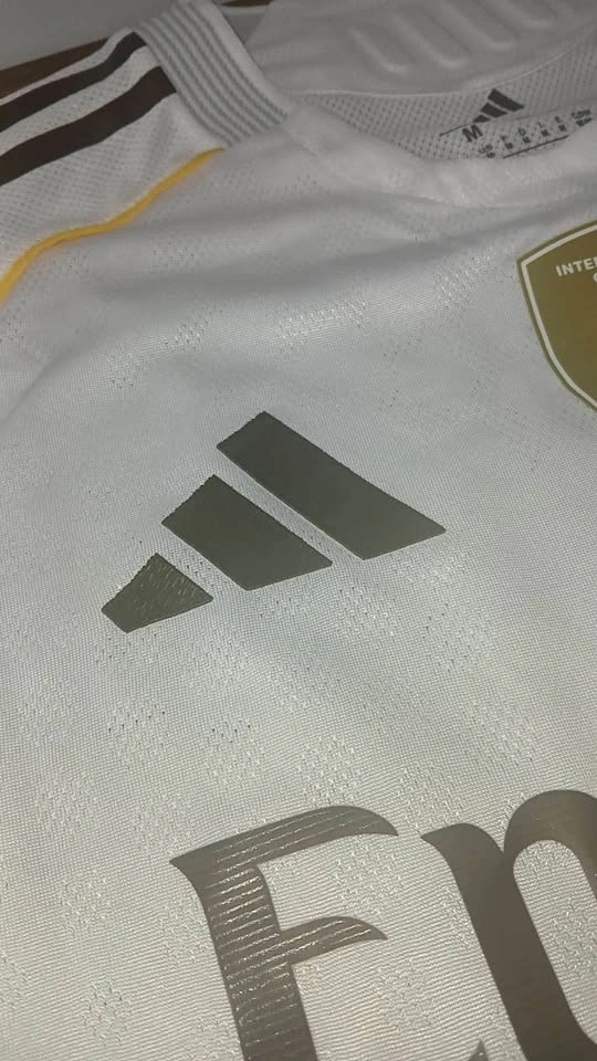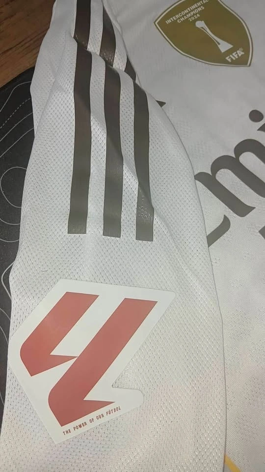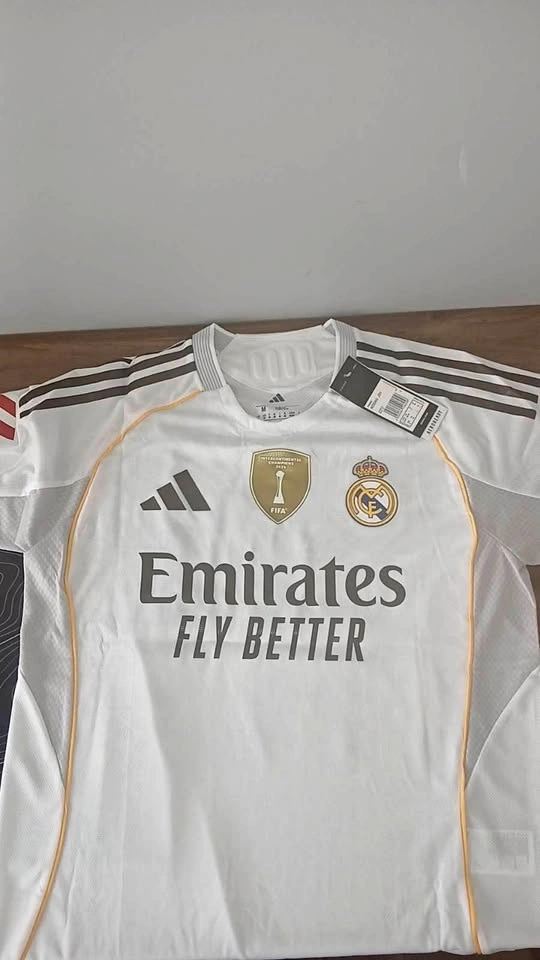 Clean white jersey with gold details, Emirates Fly Better sponsor, Real Madrid badge, and the FIFA Club World Champions patch. Looks fire in person — perfect for game days or just wearing out.