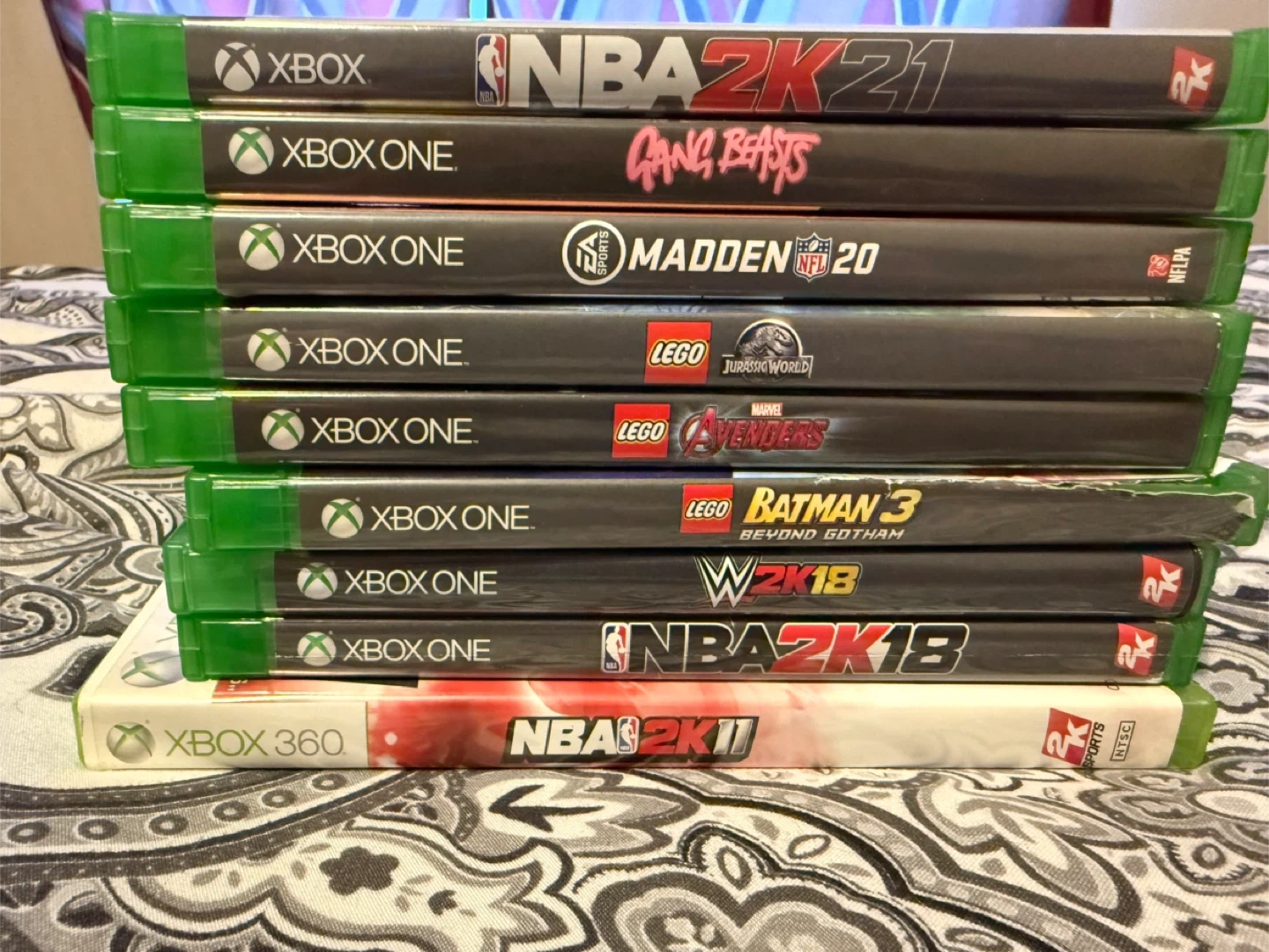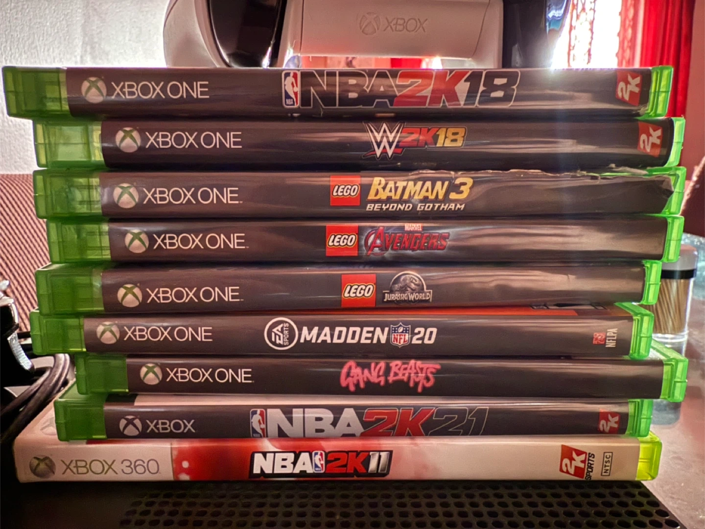 . games are included: NBA 2K18, WWE 2K18, LEGO Batman 3, LEGO Avengers, LEGO Jurassic World, Madden NFL 20, Gang Beasts, NBA 2K21 (