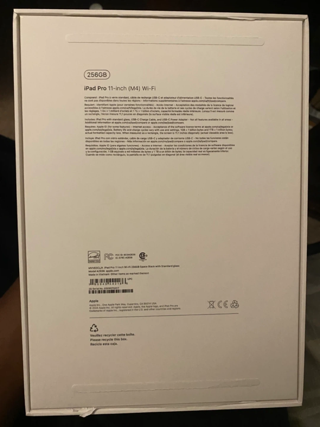 Selling a open box iPad Pro 11-inch (M4) with Wi-Fi and 256GB storage! It comes with standard glass. Model number is A2836. The box is included!