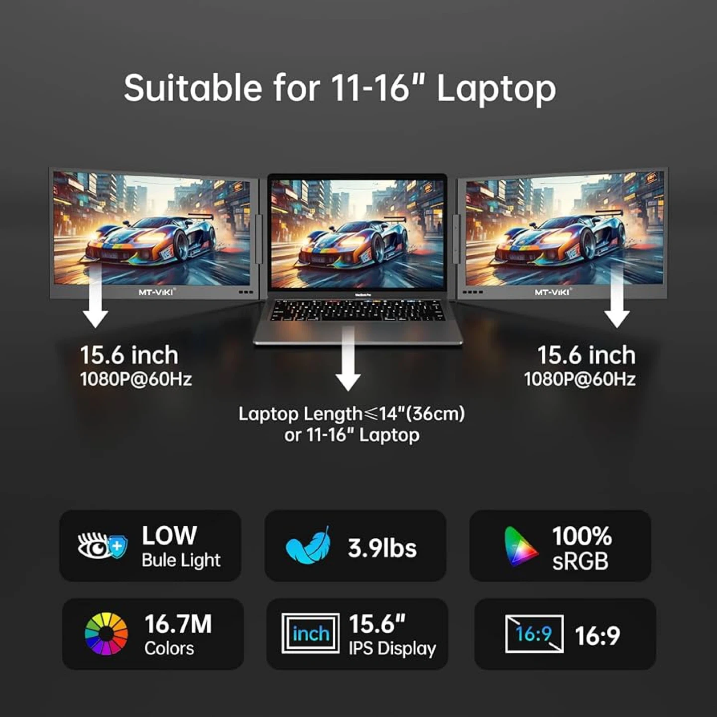 MT-VIKI 15.6" FHD 1080P Dual Portable Laptop Monitor