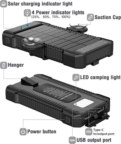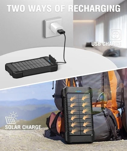 Experience the convenience of charging your devices on the go with this Solar Power Bank. Boasting an impressive 38800mAh capacity, it's ready to power up your smartphone, tablet, or other USB-compatible devices. The integrated solar charger feature allows you to harness sunlight to recharge the bank, making it a practical accessory for outdoor adventures, travel, or emergency situations. Designed with three ports, this portable solar charger can simultaneously charge multiple devices. Its sleek, compact design fits easily into any backpack, ensuring you have a reliable source of power at hand whenever you need it. Whether you're away from home or facing a power outage, this Solar Power Bank is a must-have for keeping your devices charged and running smoothly.