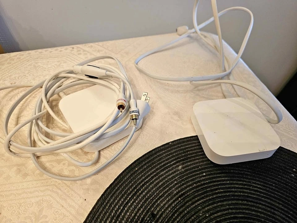 Apple Express routers model A1392. One comes with Monster headphone to AV cables $50. One with just power cable $40. Pickup east end of Kingston.