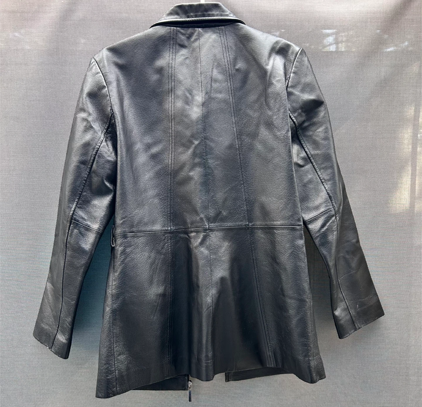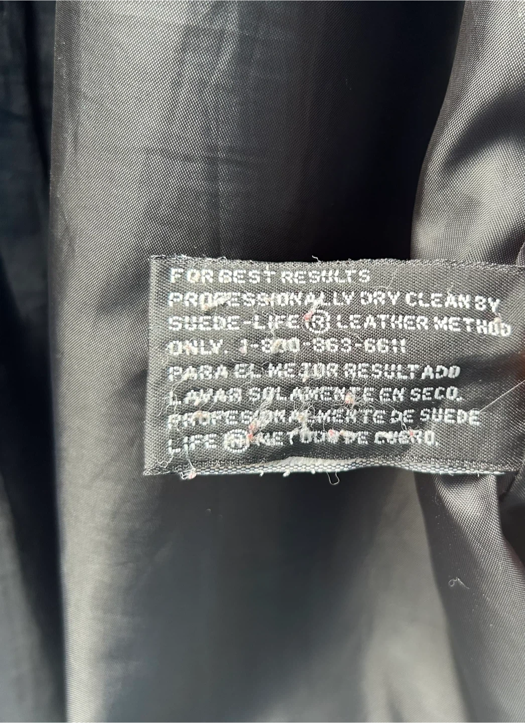 Selling a Worthington genuine lambskin leather jacket in size medium. It's a sleek black colour and in great condition! The tag indicates it should be professionally dry cleaned by a suede-life leather method.