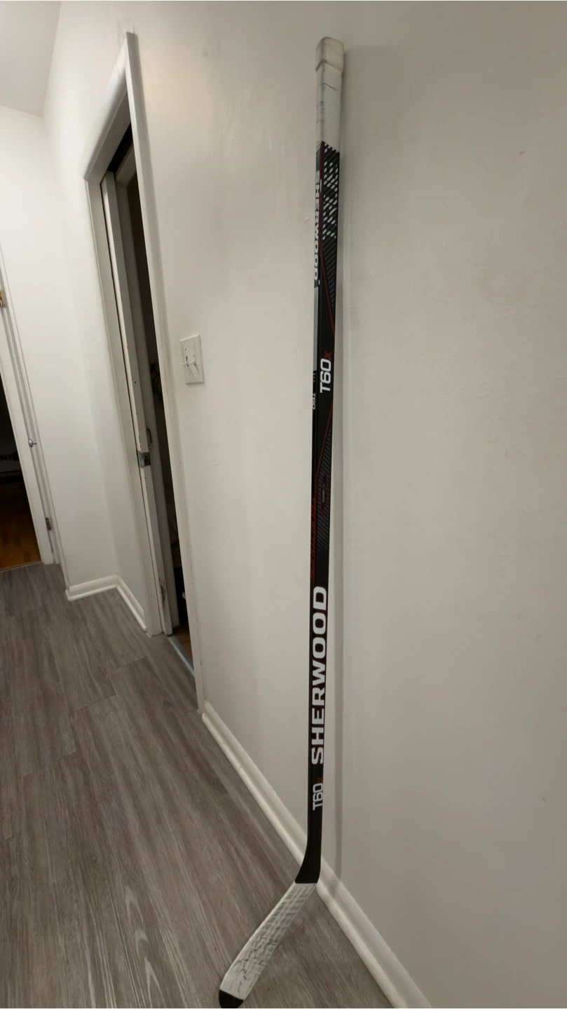 Sherwood T60X hockey stick for seniors. It's a senior size stick with a PP92 curve and F75 flex. This stick is ready for the rink!