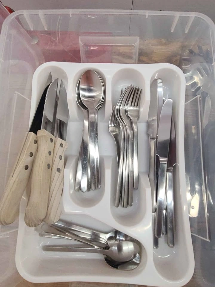 Good condition kitchenware, dinnerware, cutlery, pots and more.