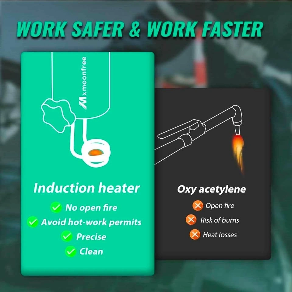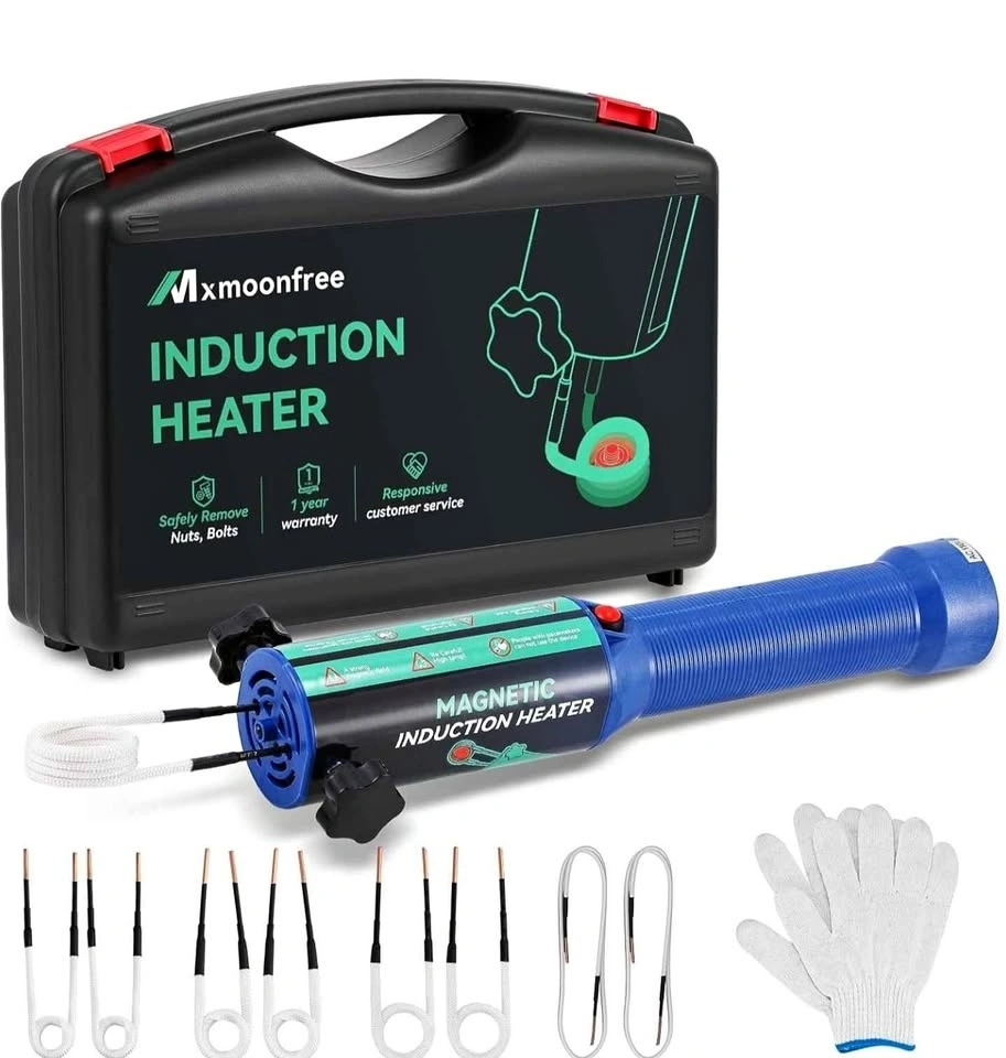 1500W Magnetic Induction Heater, 110V. Includes 8 coils for nut, bolt, and bearing removal. Electromagnetic heating for rust removal.
