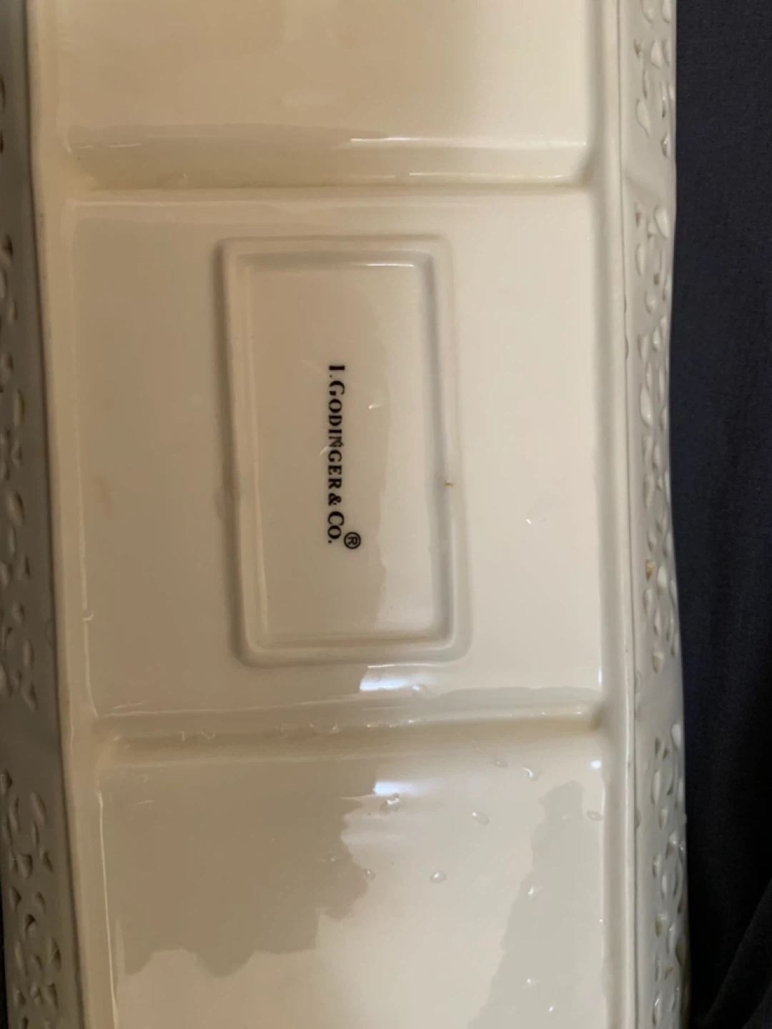 Selling a Godinger & Co. serving tray. It's perfect for serving appetizers or desserts at your next gathering! The tray features a beautiful floral design around the edges and has three sections.