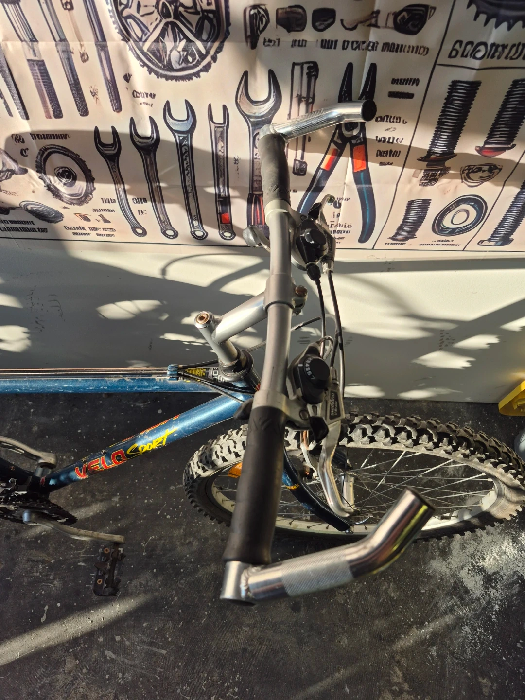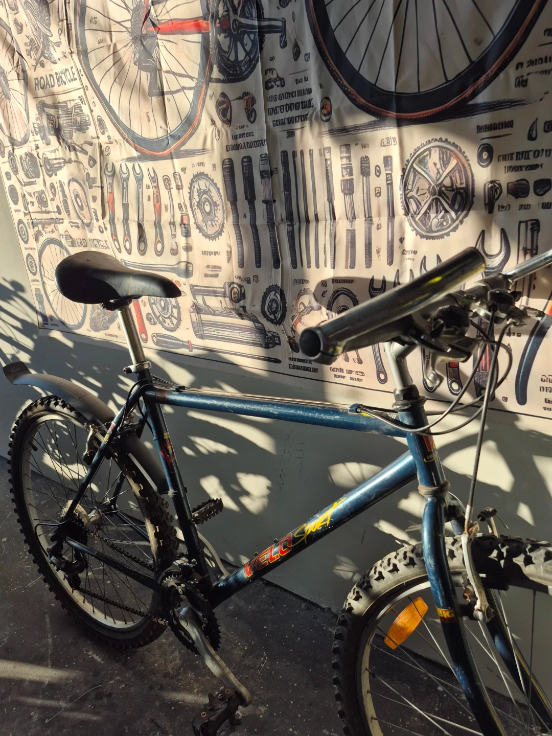 Selling a Velo Sport bicycle! It is blue and has some wear and tear on the tires. Perfect for getting around town or hitting some trails