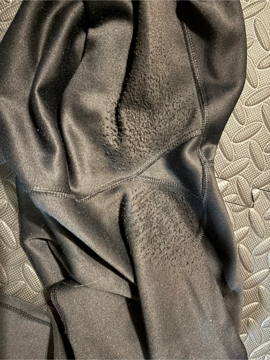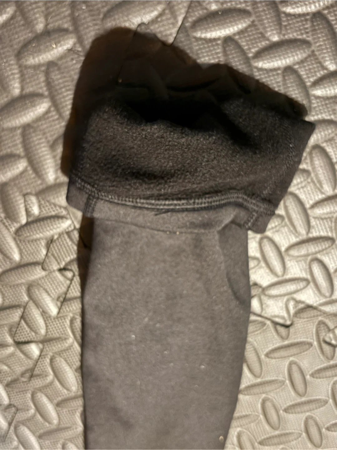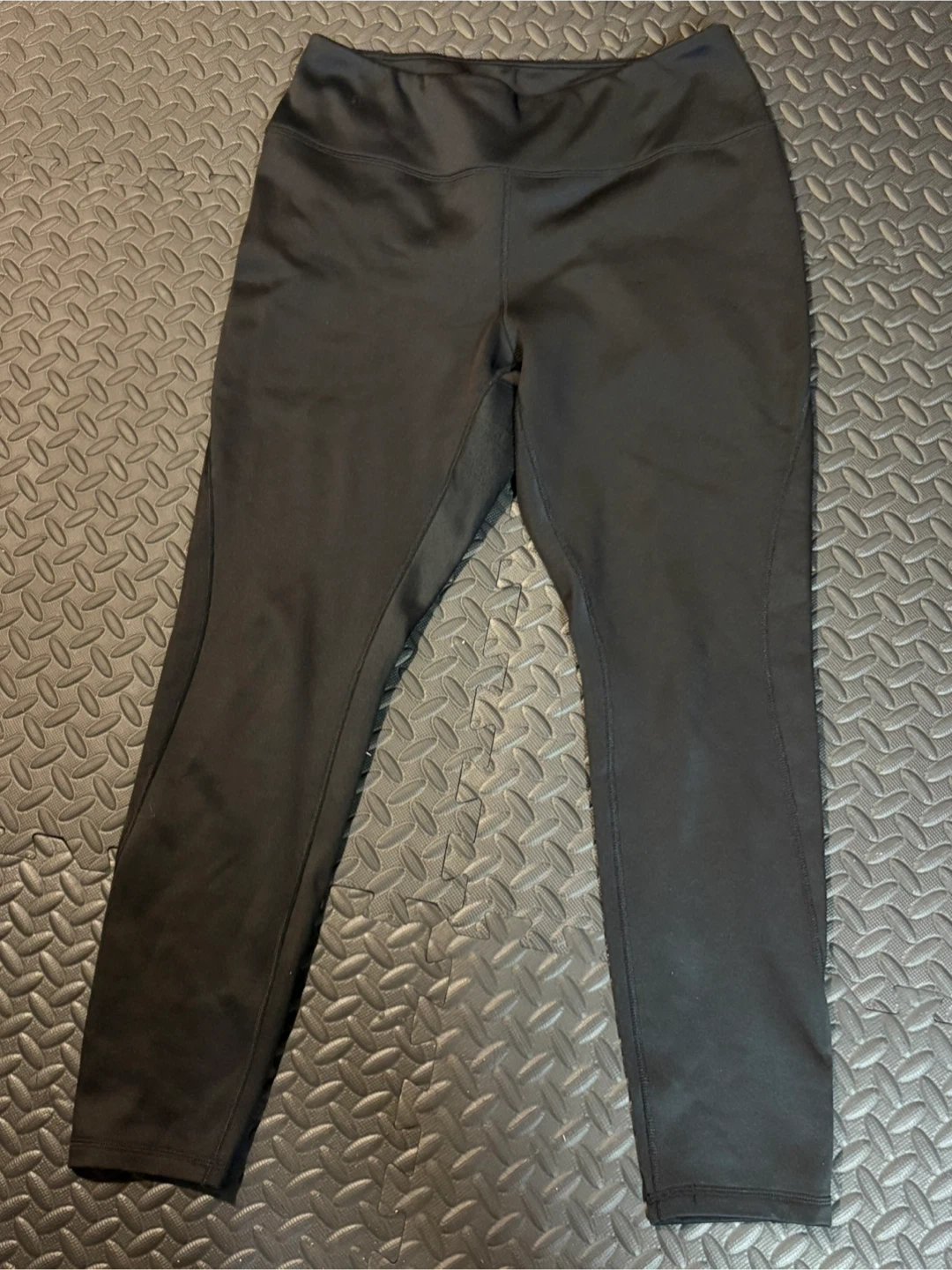 Black fleece lined active leggings, great for base layer or on their on. Some pilling is visible on the inner thigh area.