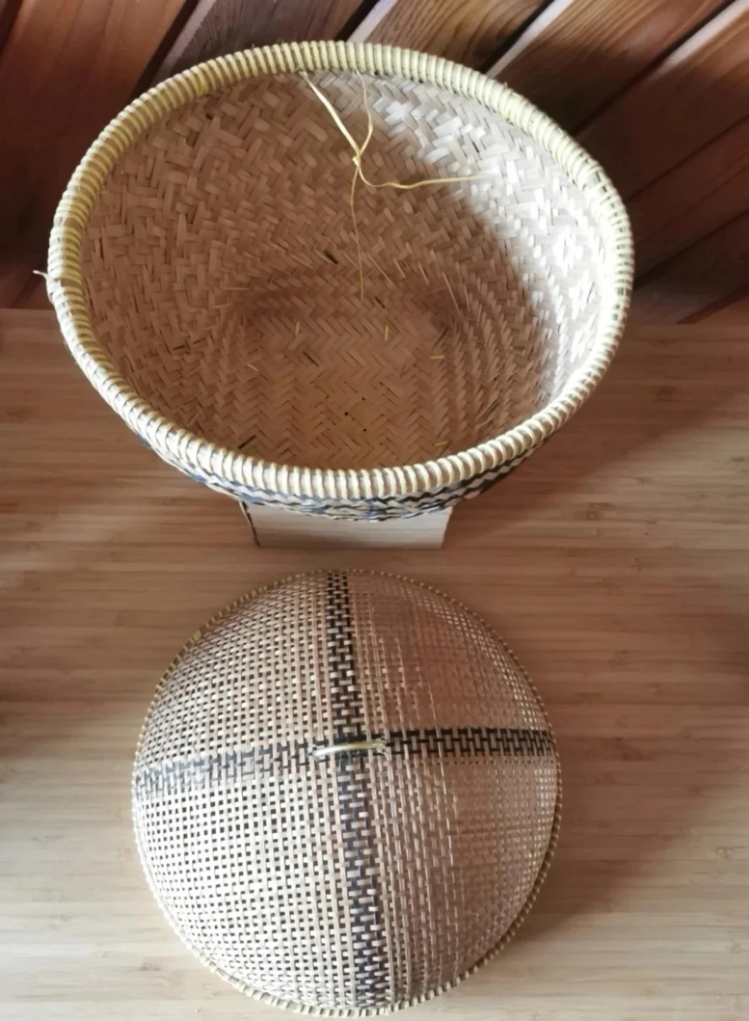 Vintage Handwoven Bamboo Basket w/ Lid