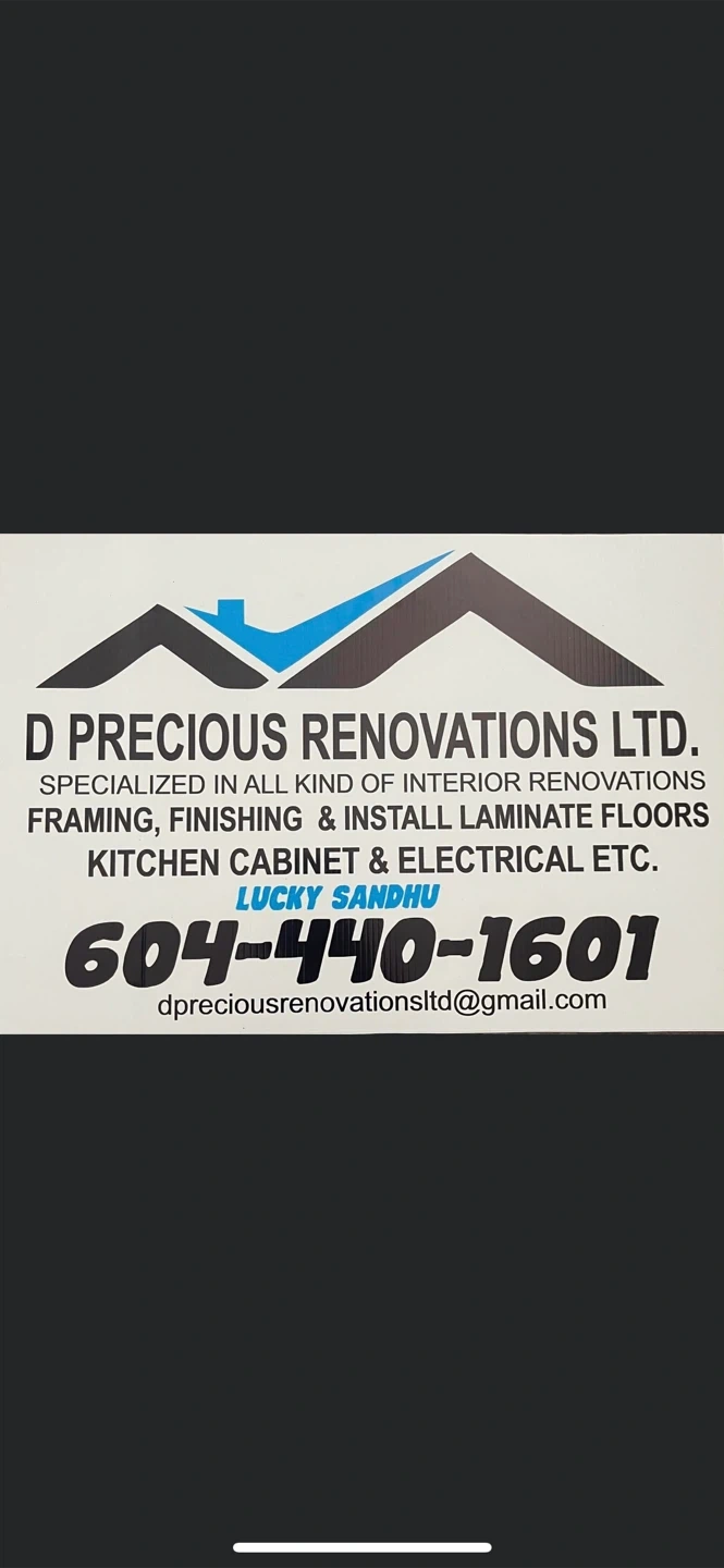 Contact Lucky Sandhu at 604-440-1601 or dpreciousrenovationsltd@gmail.com for services.