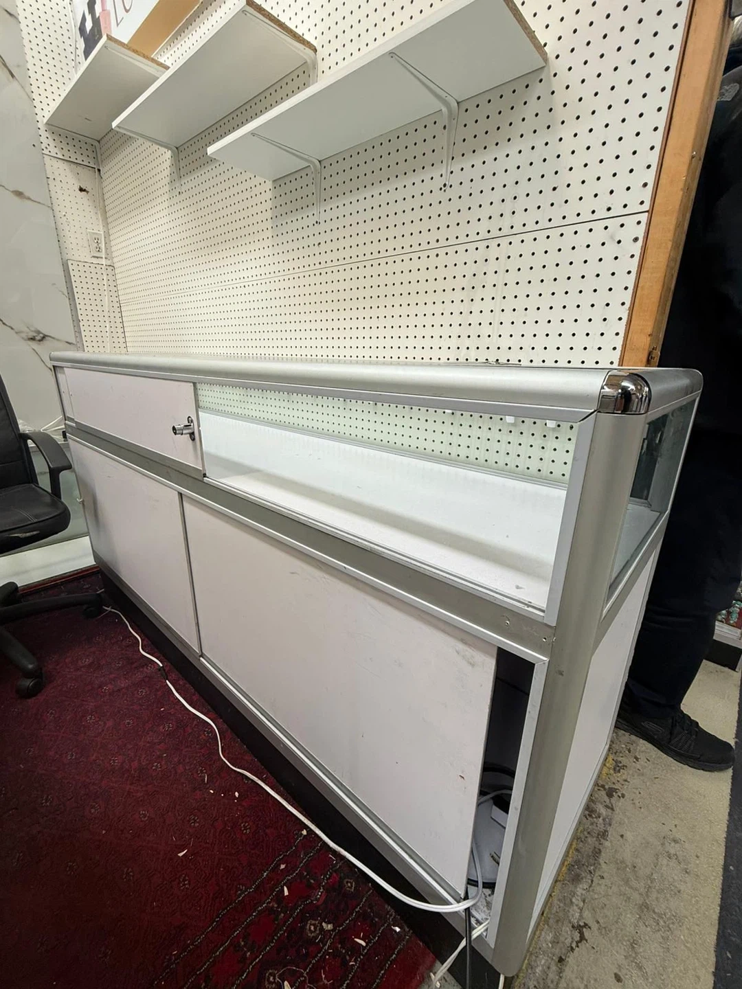 Glass Display Showcase Counter with Silver Trim