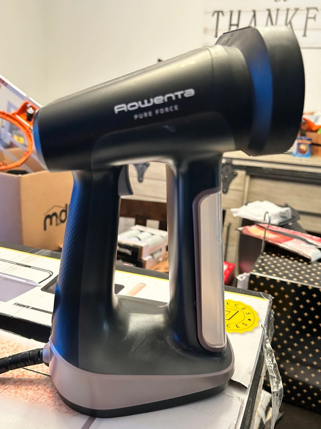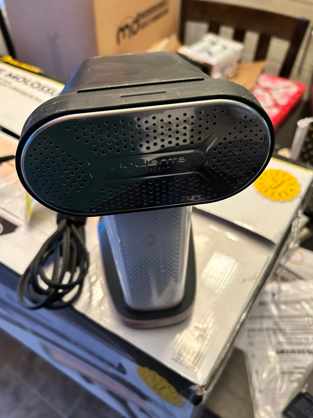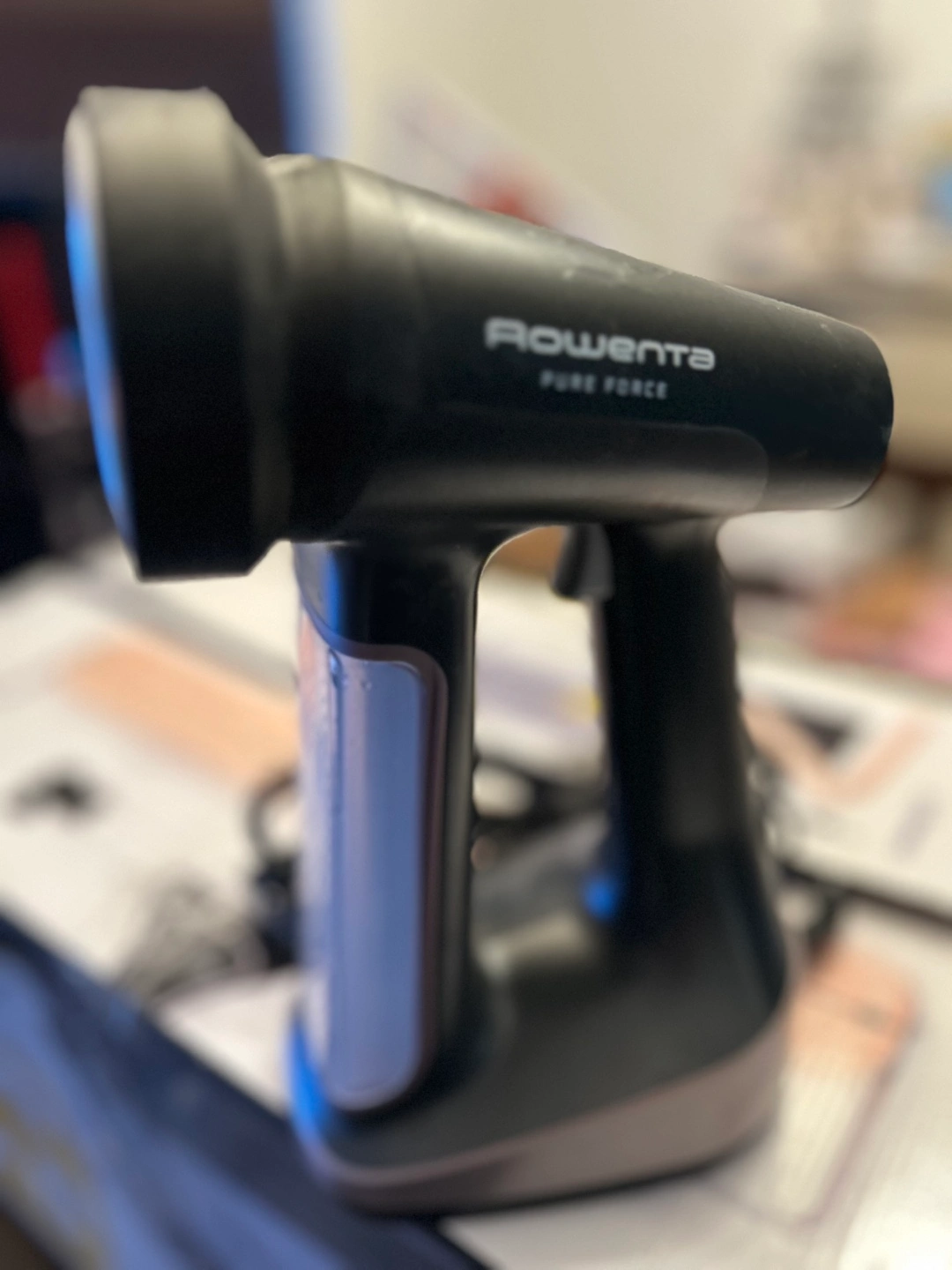 Used Rowenta Pure Force handheld garment steamer. Great for quick touch-ups. Cord included. Minor wear.