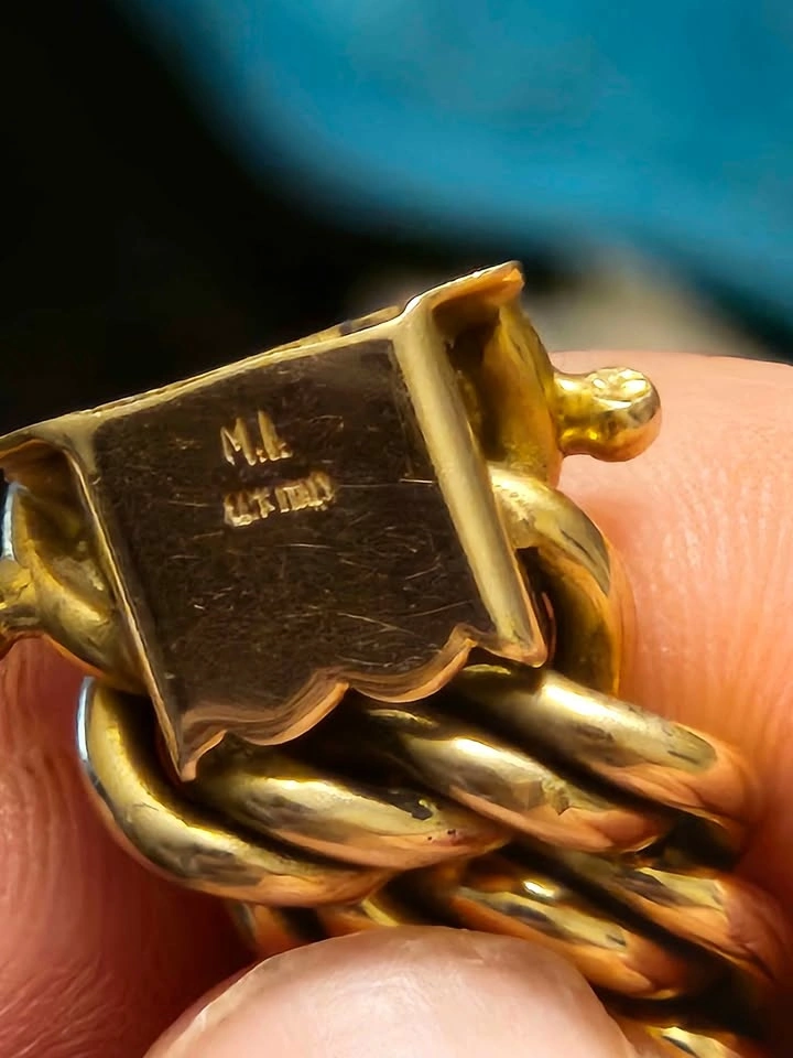 This bracelet is at least 60 years old and was passed down to me. It is marked '14k Italy' on the clasp and weighs just under an ounce at 27 grams. It's a bit tricky to get a clear picture of the clasp, but I've done my best.