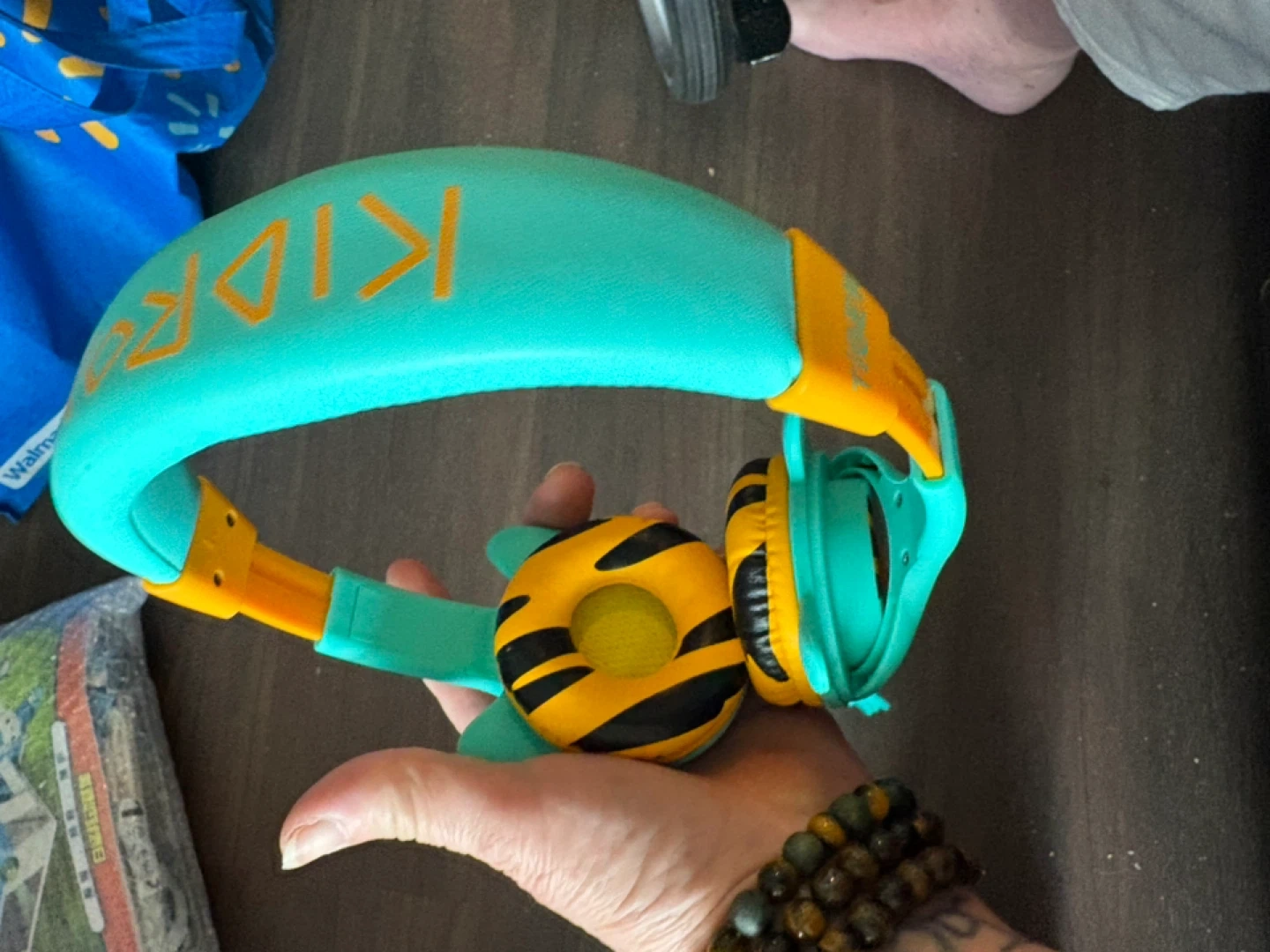Kids Headphones - Teal and Orange Tiger Design