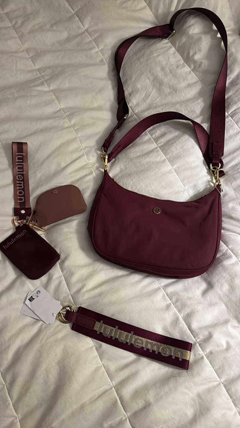 Gorgeous Lululemon bundle in a rich burgundy shade with gold hardware. All items are stylish, functional, and not currently available anymore. Perfect everyday set!