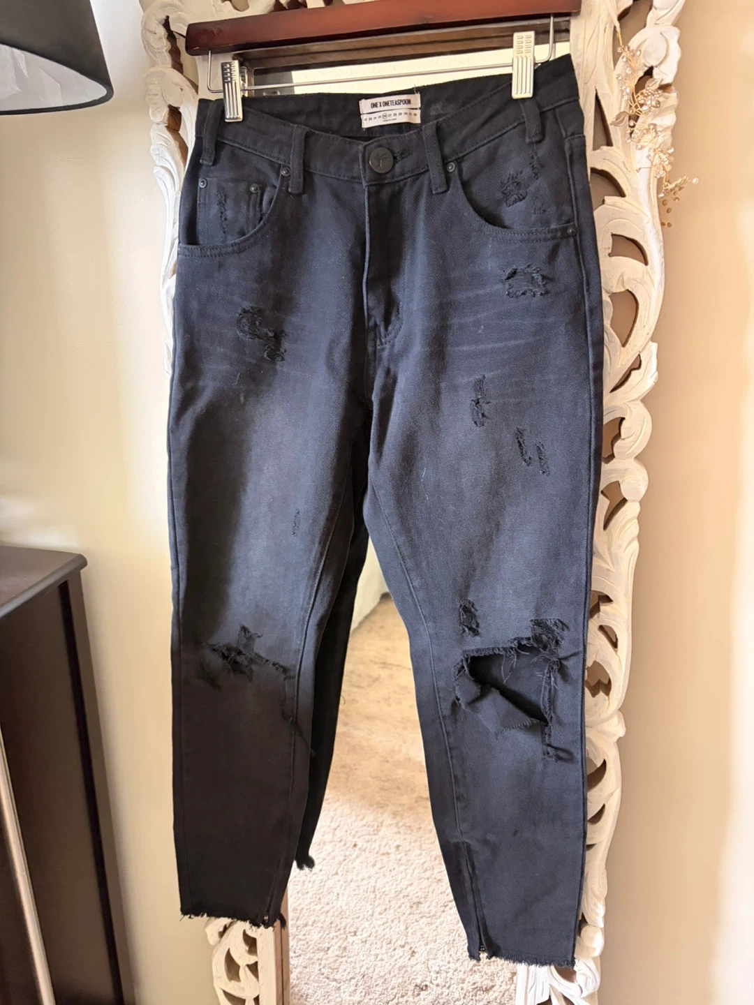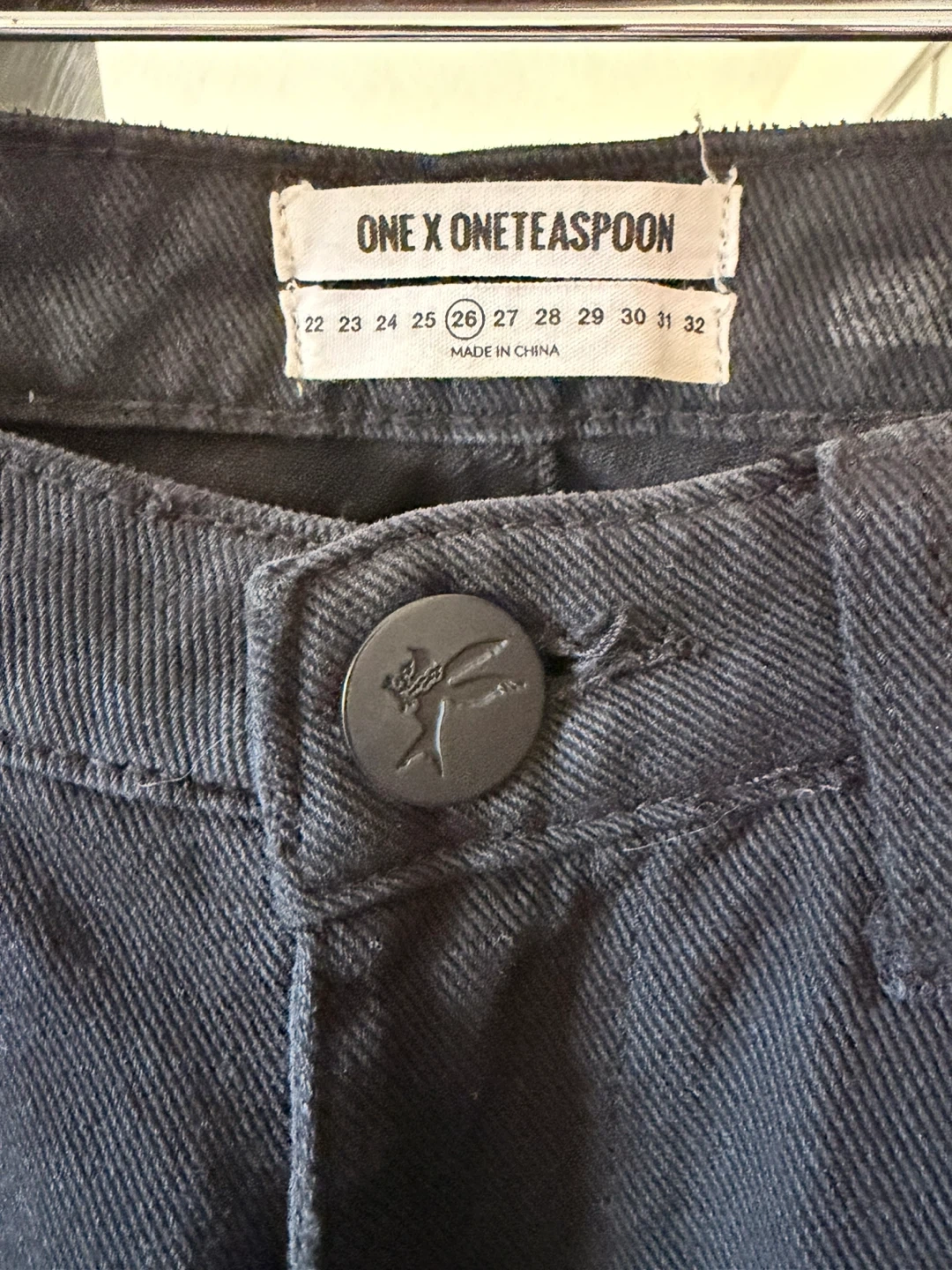 Selling a pair of One Teaspoon High Waist Freebird black denim jeans, size 26. They are lightly used.