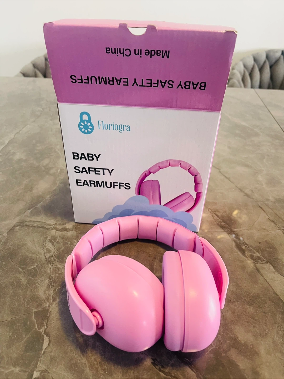 These are Floriogra baby safety earmuffs in pink. They're designed to protect little ears. They come in their original packaging.