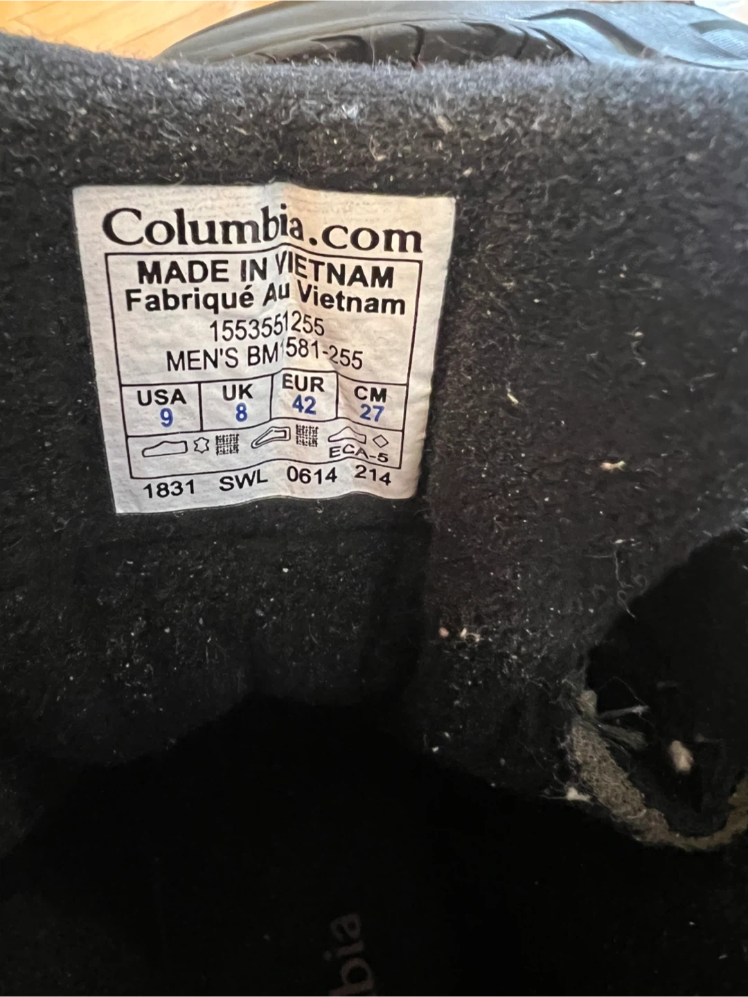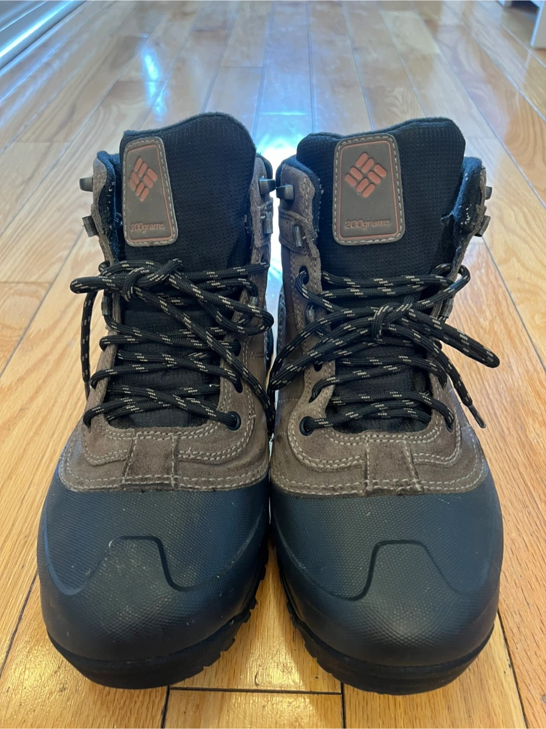 Columbia waterproof winter boots in a men's size 9. They have 200 grams of insulation and a Techlite sole. Made in Vietnam. Great for staying warm and dry during colder weather!