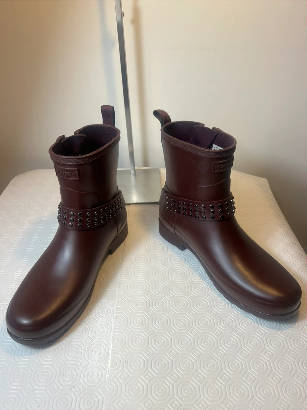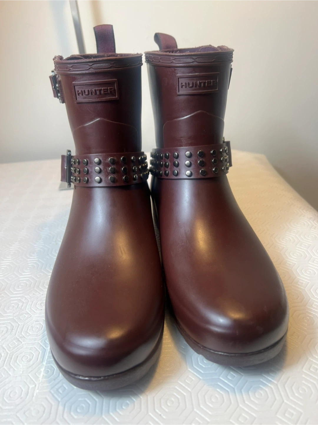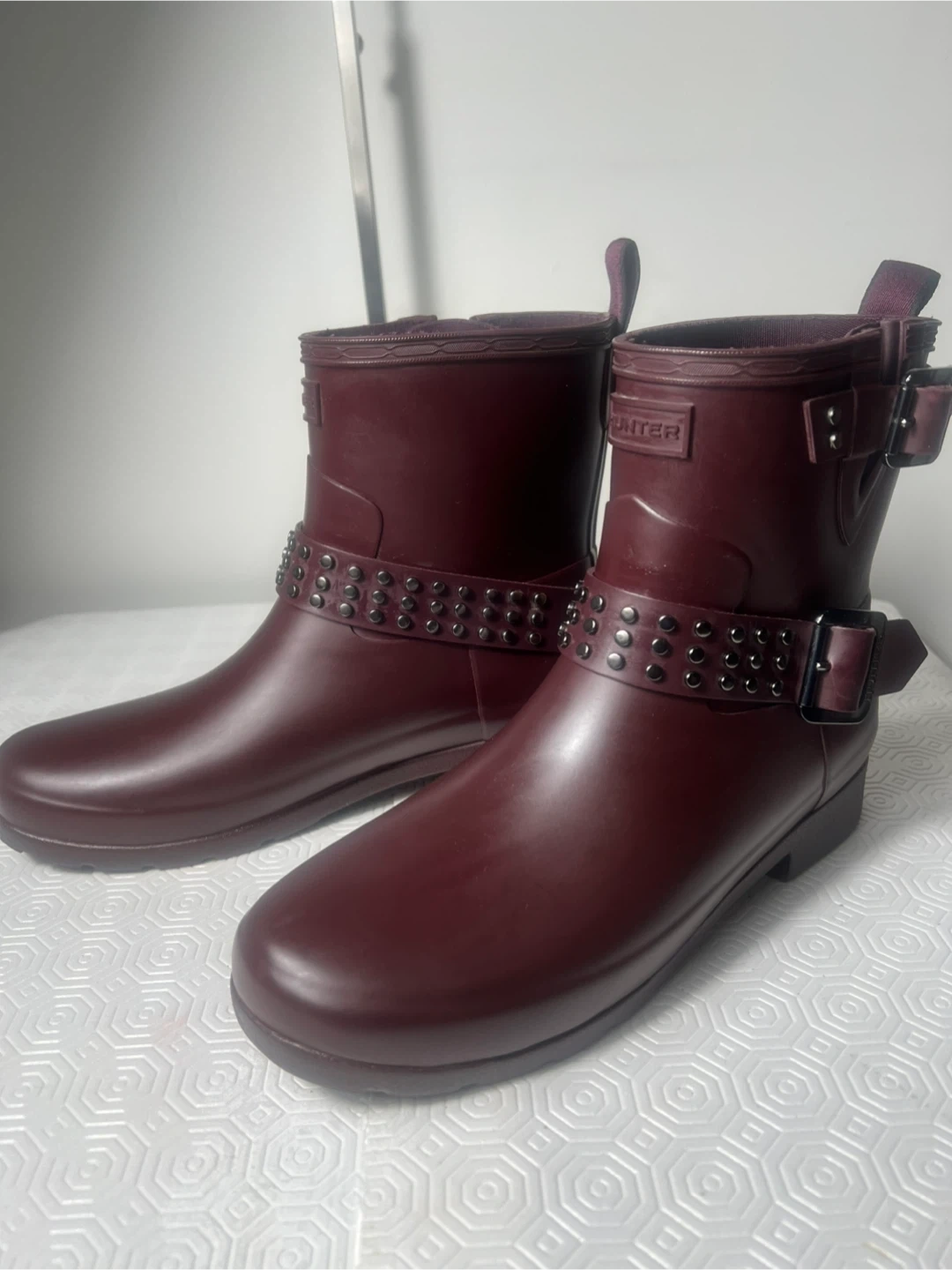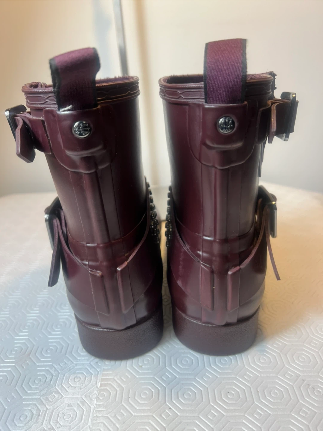 Hunter Burgundy Rubber Boots with Studded Straps Size 7
