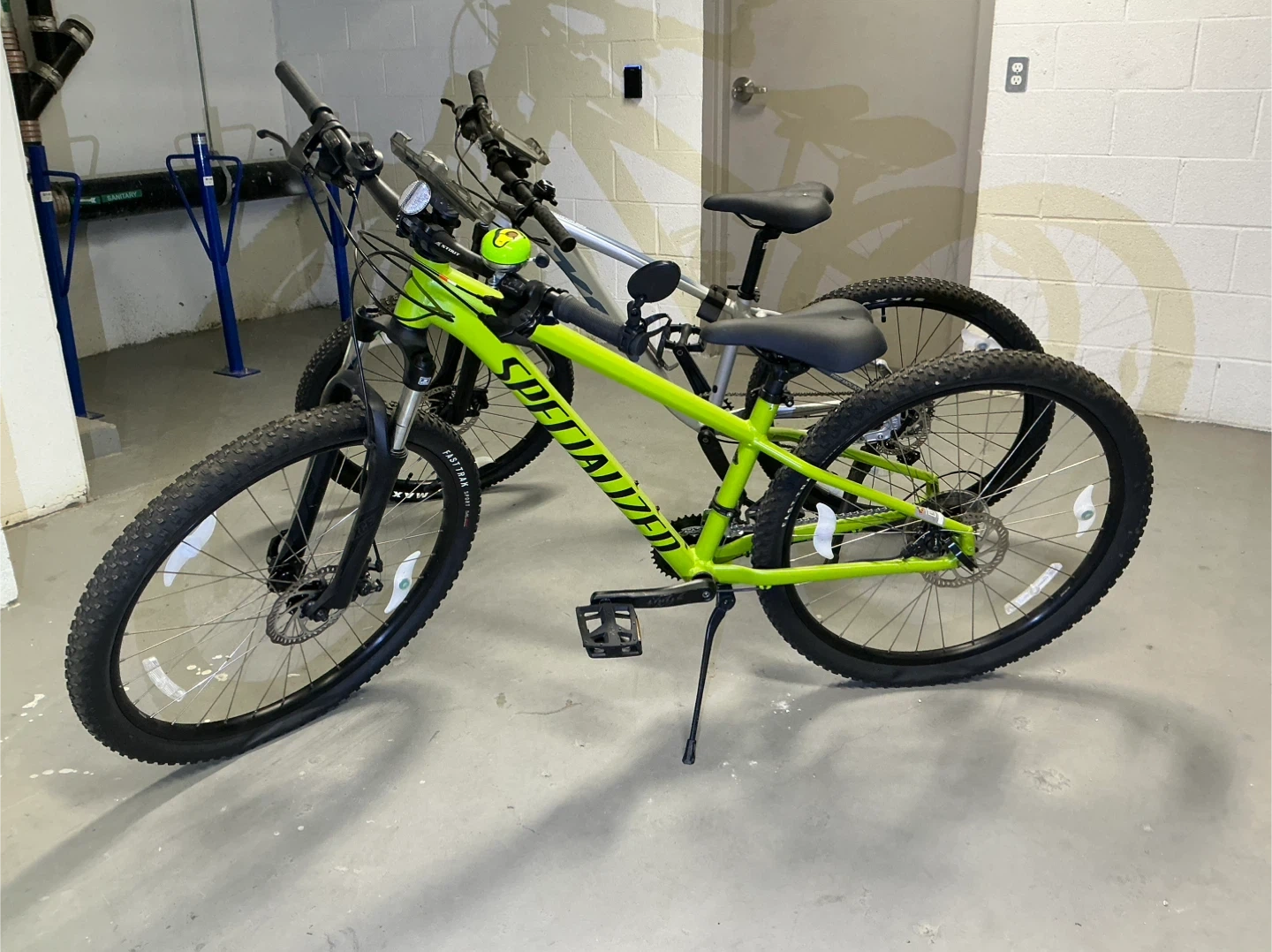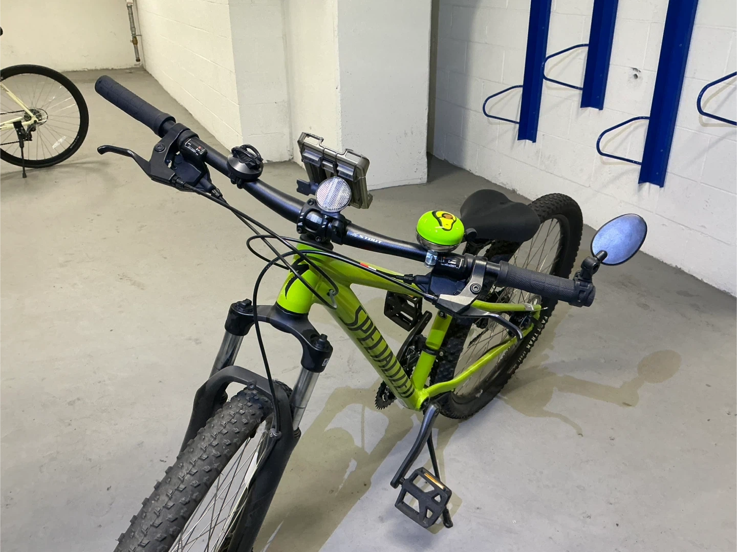 Specialized Rockhopper in neon green, small frame, 27.5” wheels with disc brakes. Barely ridden, like new condition. Comes with everything: ABUS U-lock, Delta handlebar phone mount, handlebar mirror, avocado bell, and upgraded gel saddle for your ass comfort.