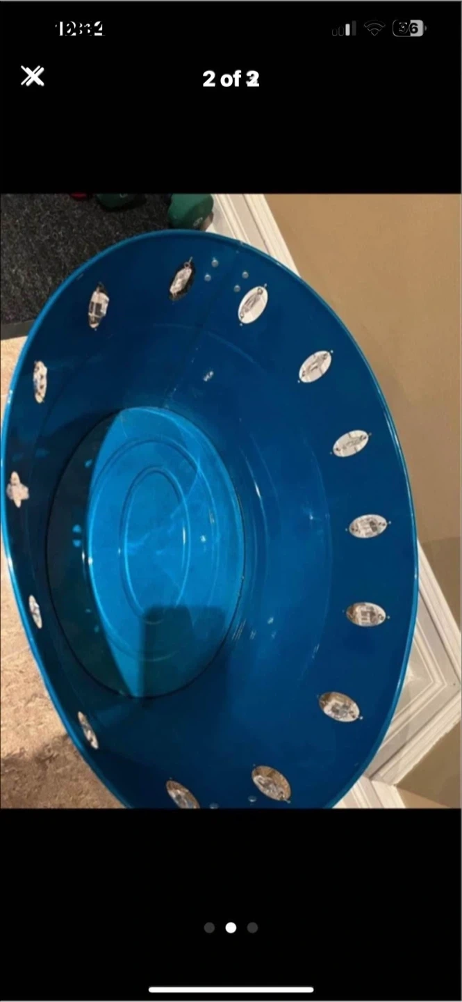 Blue Metal Tub with Decorative Accents