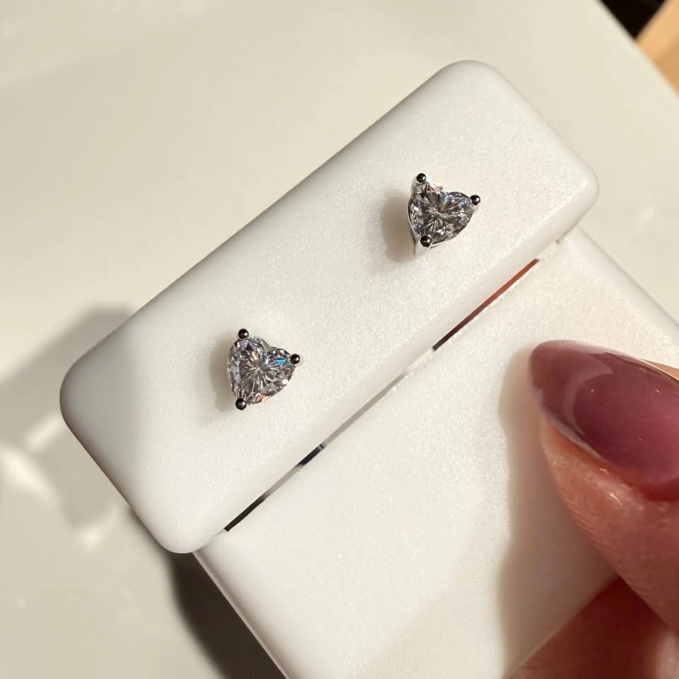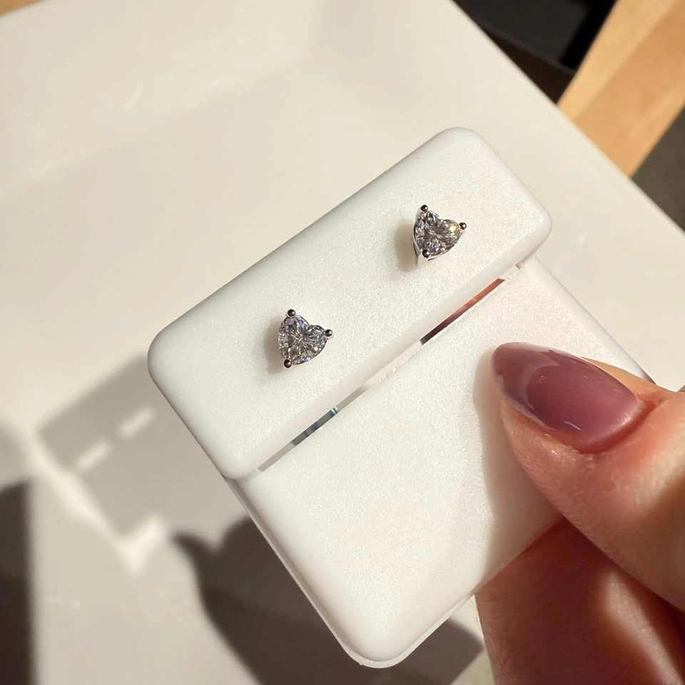 Details: 0.60 CTW, Moissanite (VVS clarity), Sterling silver, Heart-shaped studs. Great everyday earrings or gift.