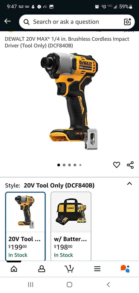 DEWALT 20V MAX* 1/4 in. Impact Driver (Tool Only)