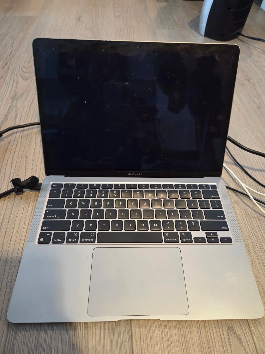 This is an Apple MacBook Air laptop. It's a silver model. My dad found this around Wellington/Front St. Please let me know if this is yours.
