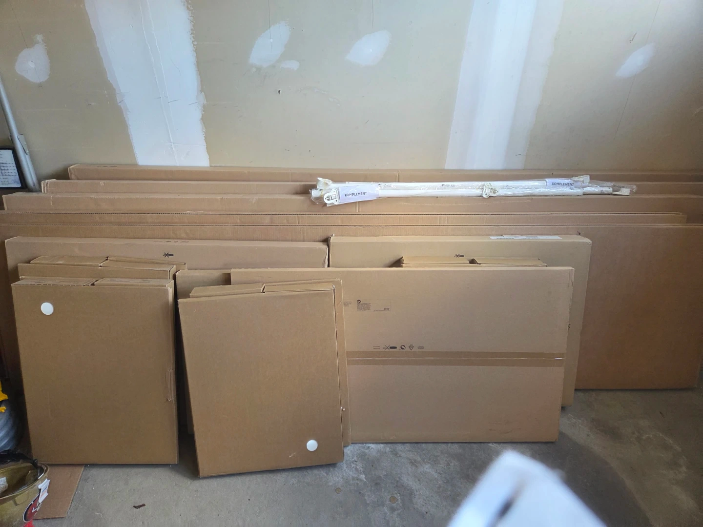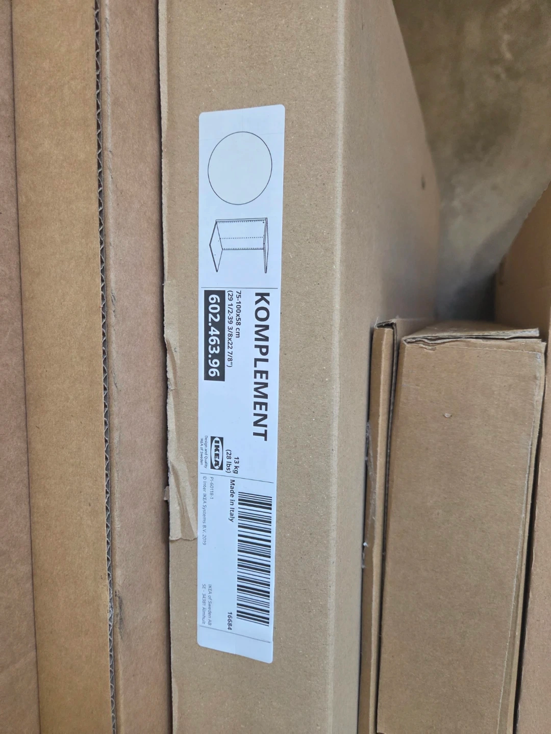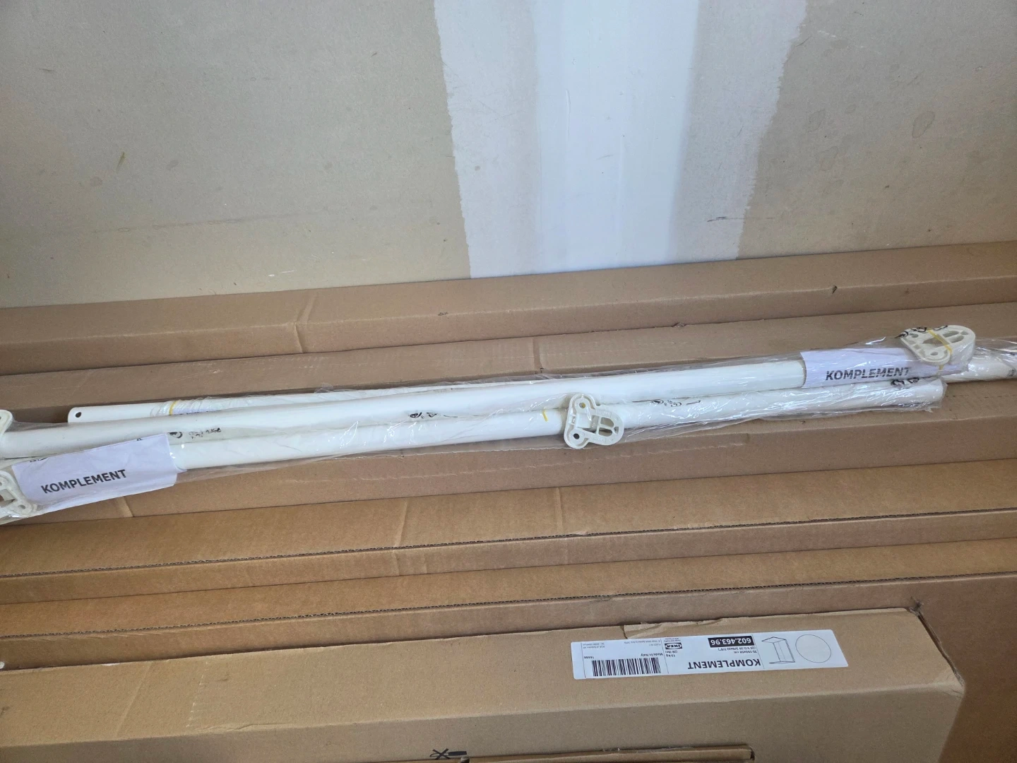 Assorted IKEA KOMPLEMENT and PAX closet system components. Includes shelves and rods. Great for organizing your closet space! It's a full closet organizer if it fits for you. Retail over $1500