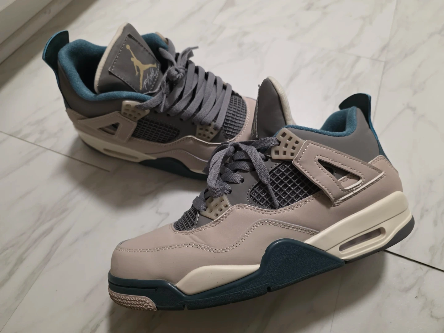 Selling a pair of Air Jordan 4 Retro SE 'Craft' Photon Dust sneakers. These are in great condition and ready for a new home. They feature a stylish design with a mix of neutral tones and a comfortable fit. Perfect for adding a touch of sporty flair to your everyday look!
