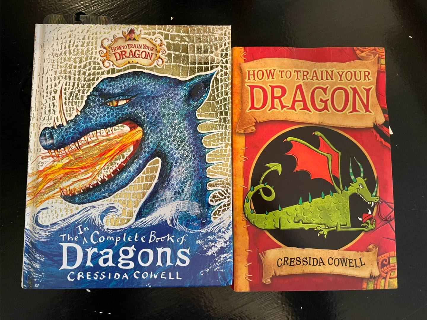 Includes 'The Complete Book of Dragons' and another 'How to Train Your Dragon' book. These popular children's books are written by Cressida Cowell. Perfect for young fans of dragons and Viking adventures!