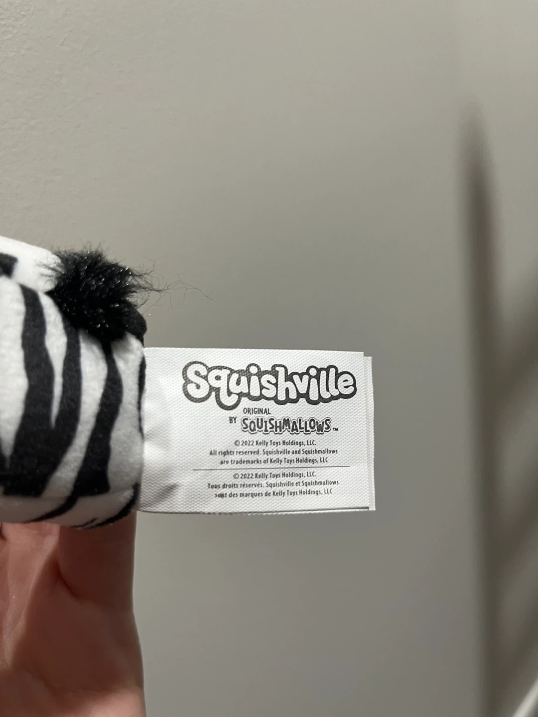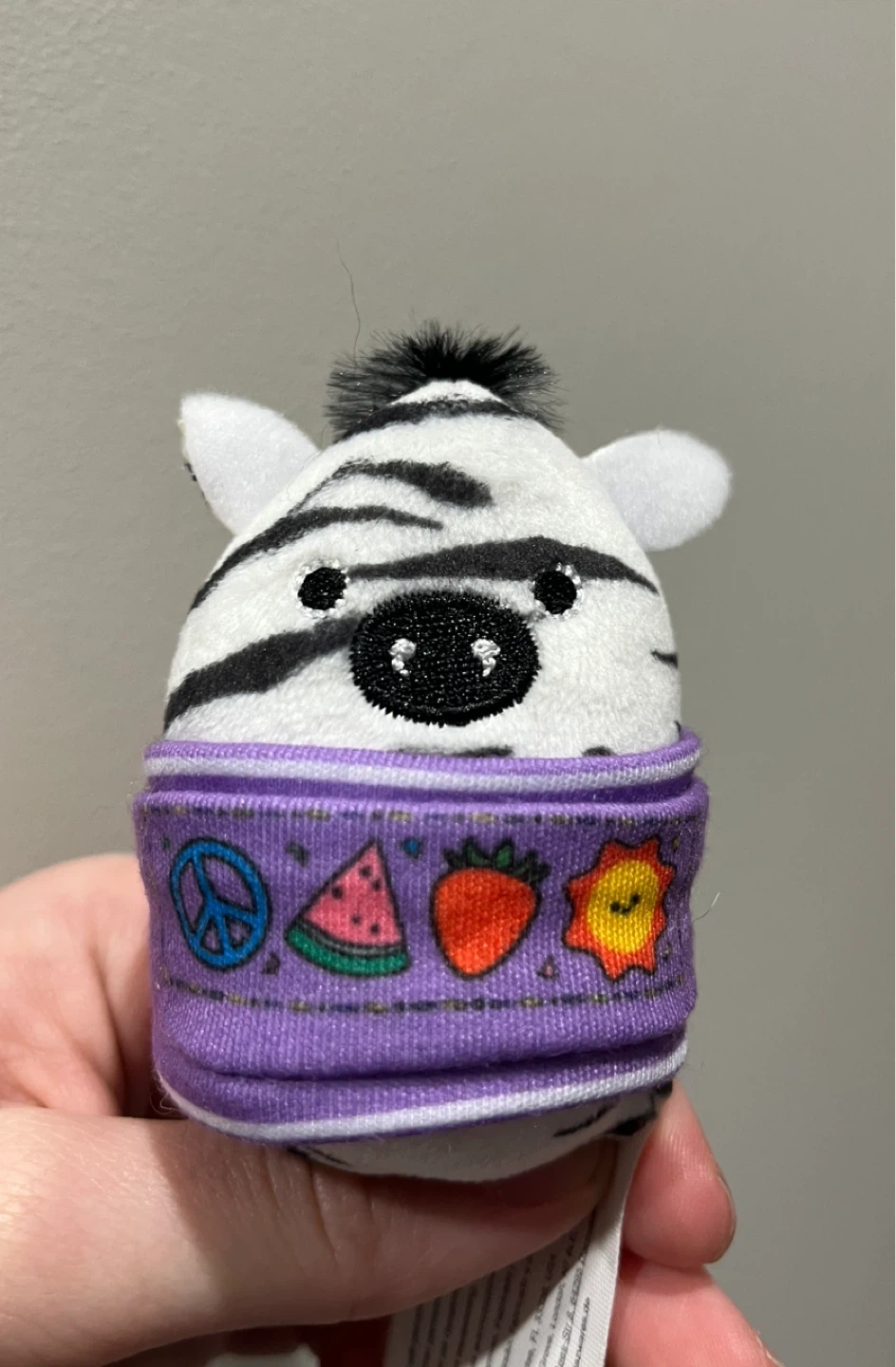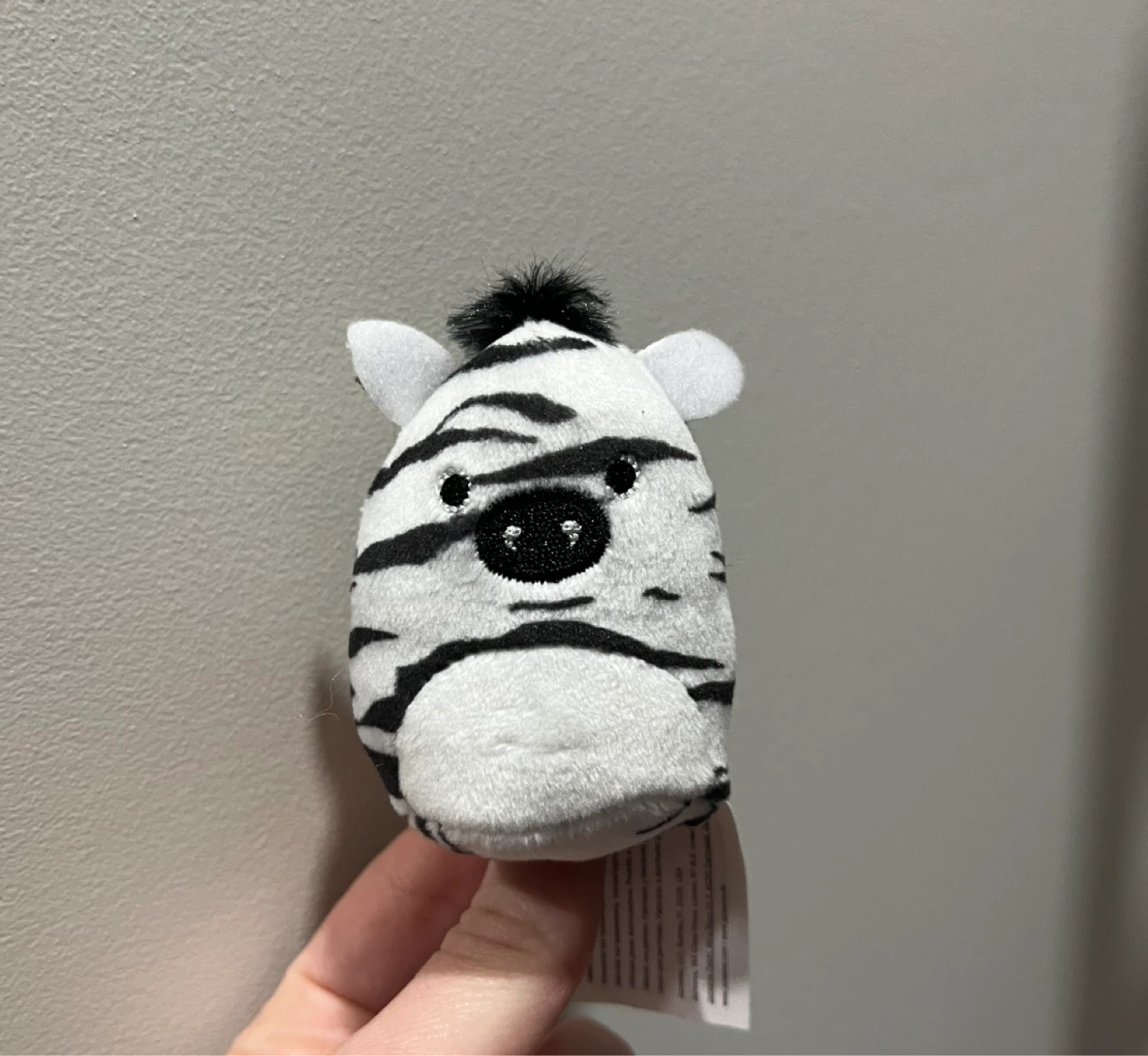 This is a Squishville by Squishmallows mini zebra plush toy. It's about 2 inches tall and made of soft, plush material. It's a cute little collectible or a fun toy for anyone!