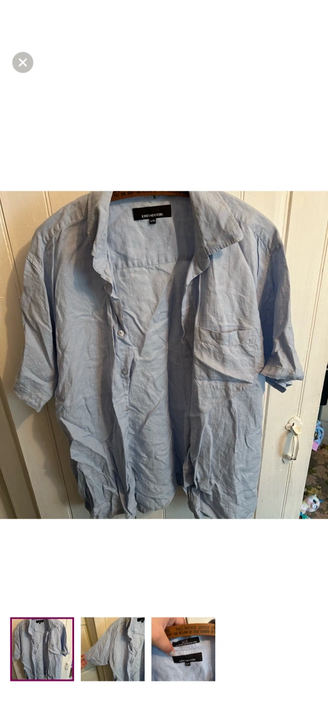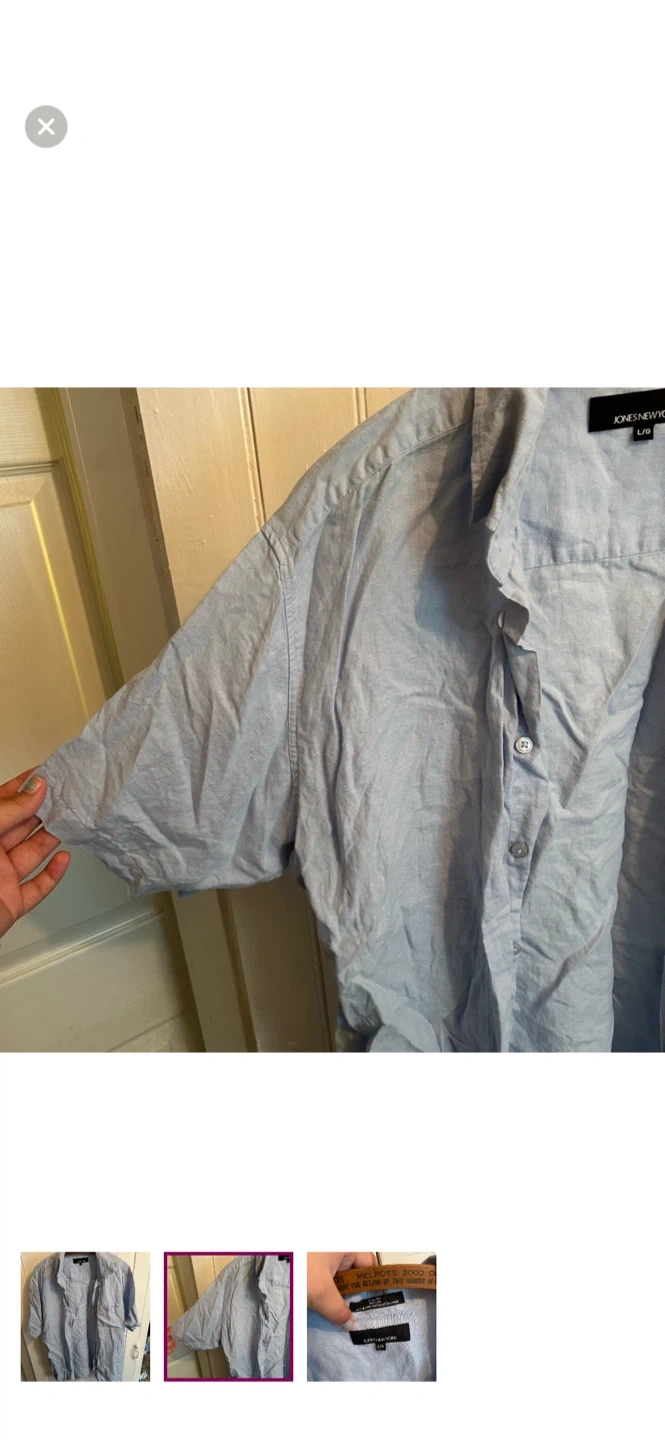 Jones New York brand. Short sleeve button up shirt. Blue in colour. 100% linen. Size men’s large. Brand new condition $8