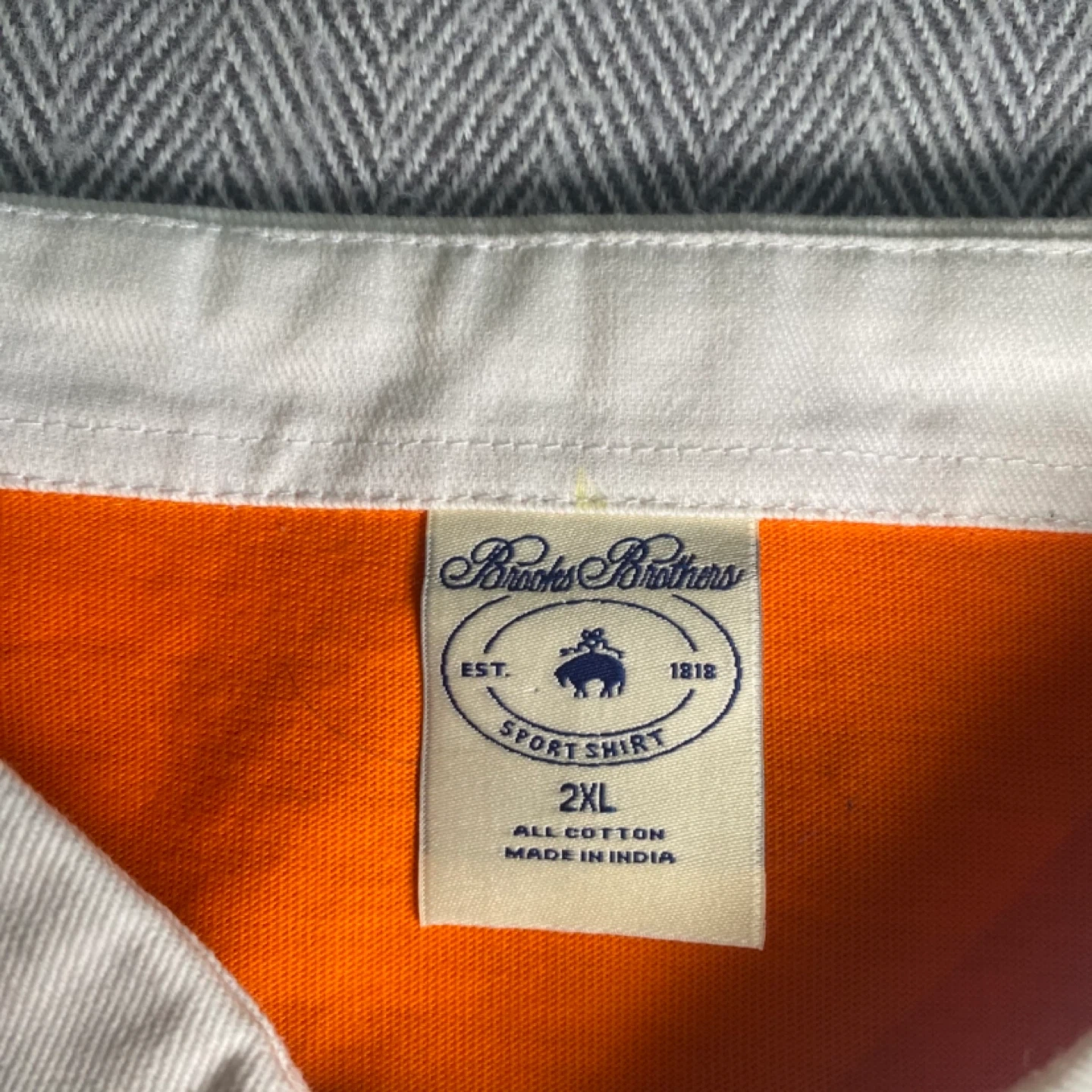 Brooks Brothers polo in a bright orange colour. Size 2XL. Made of 100% cotton. This shirt is great for casual wear.