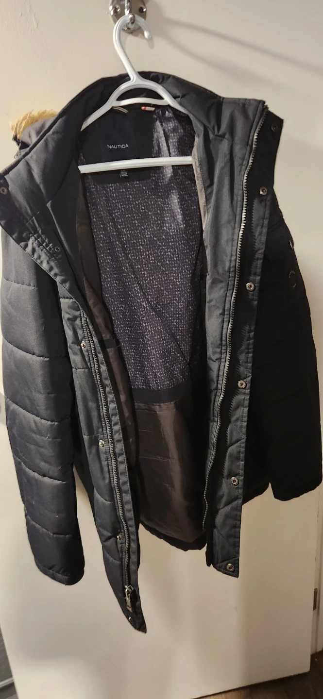 Stay warm this winter with this men's Nautica winter jacket in size large. This jacket is in good condition, perfect for braving the cold weather. A stylish and practical choice for the season!